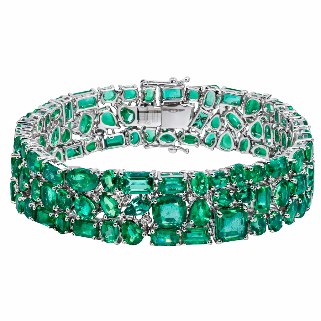 Bratara Aur Alb 18k, Smaralde 43 Ct, Diamante 0.26 Ct