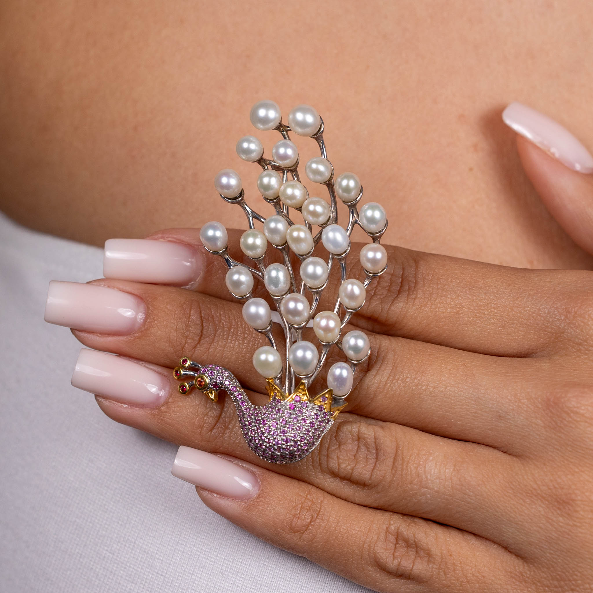 Brosa-Pandantiv Argint 925, Perle, Safire Roz