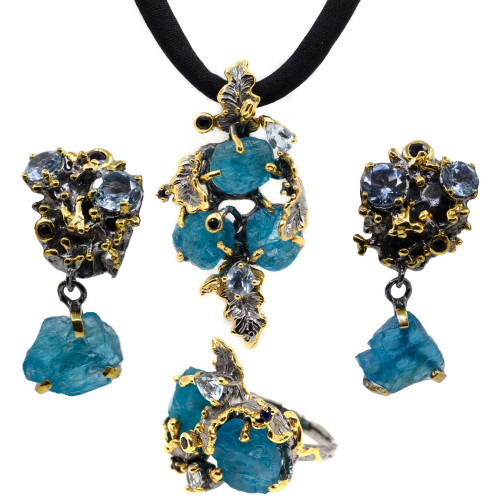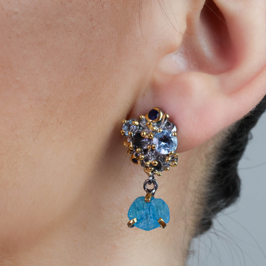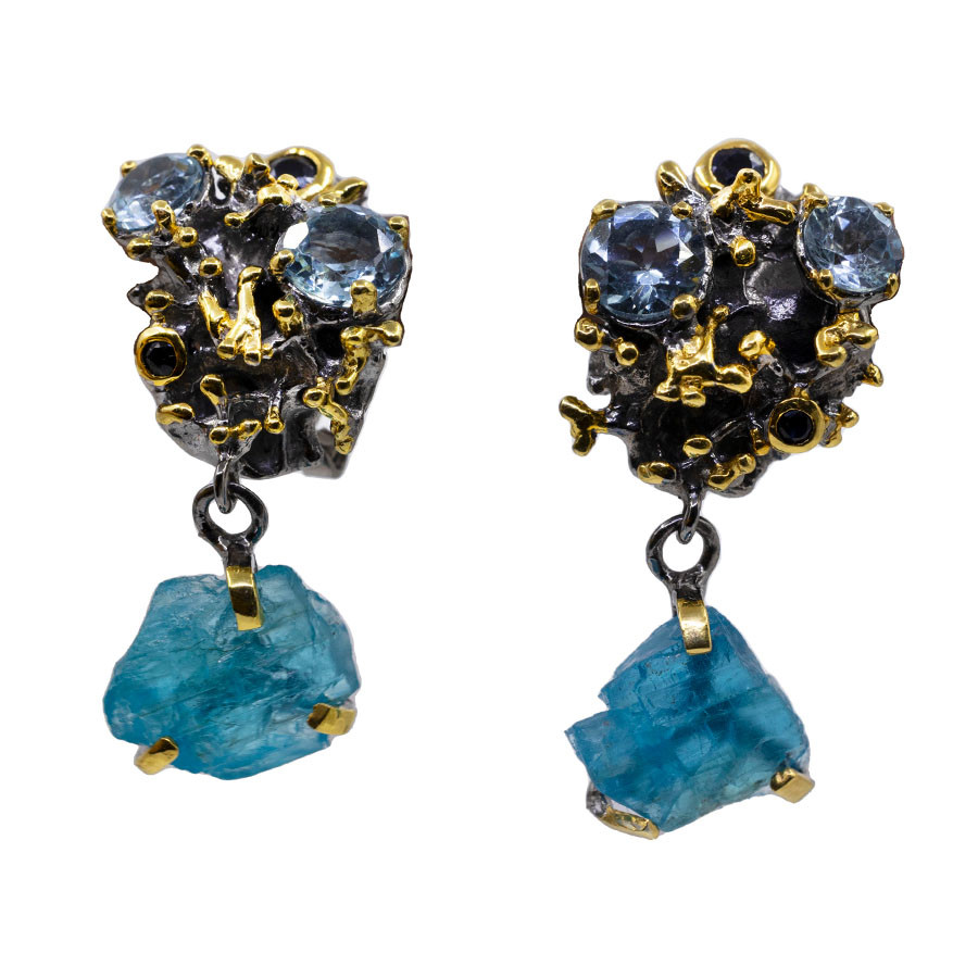 Cercei Argint 925, Apatit Brut, Topaz, Safire Albastre