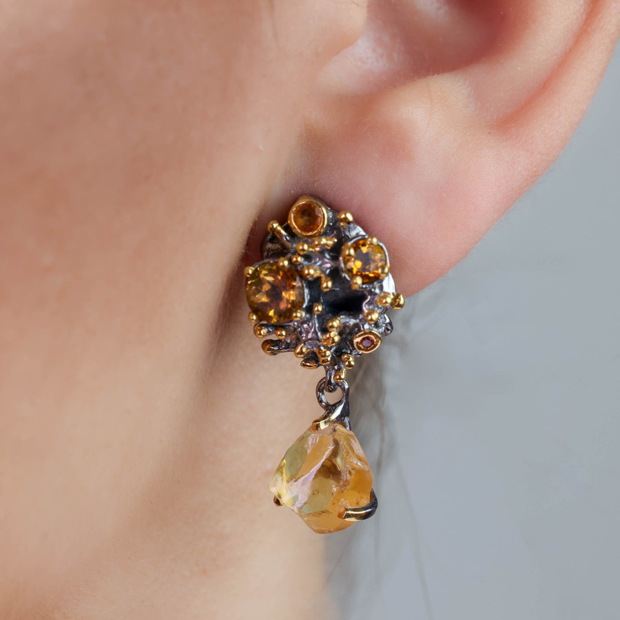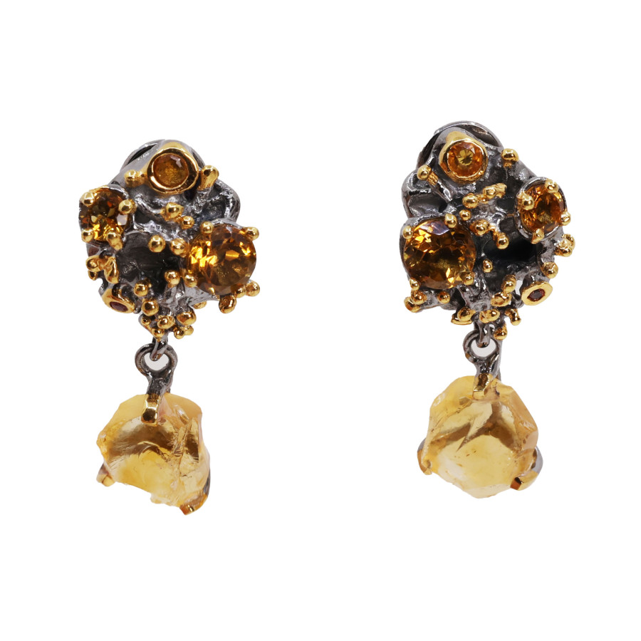 Cercei Argint 925, Citrin brut, Safire