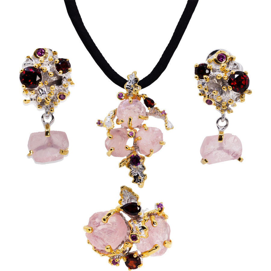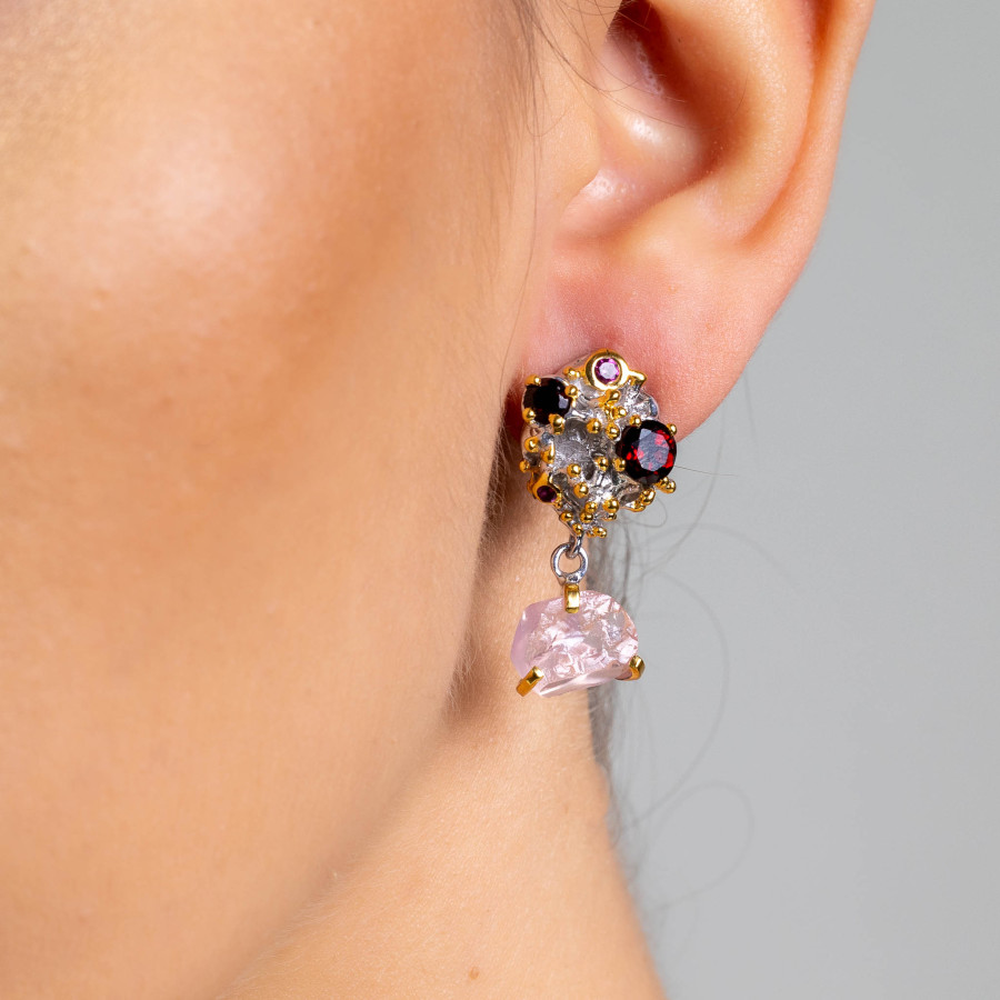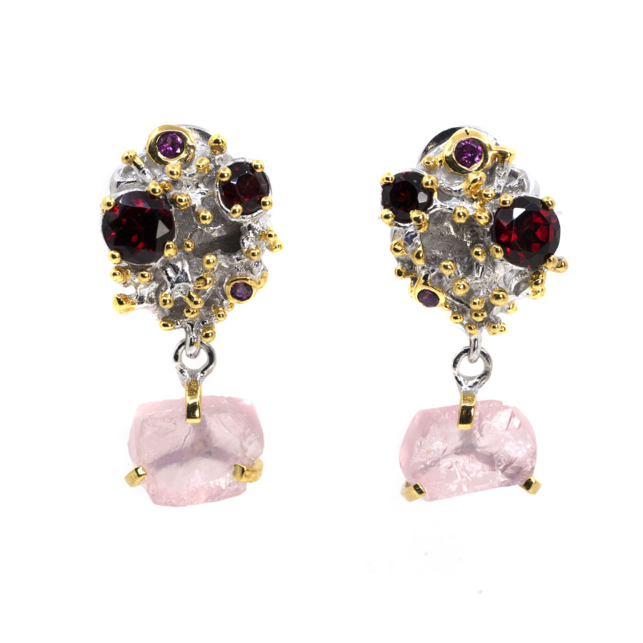 Cercei Argint 925, Cuart Roz Brut, Rodolit, Granat