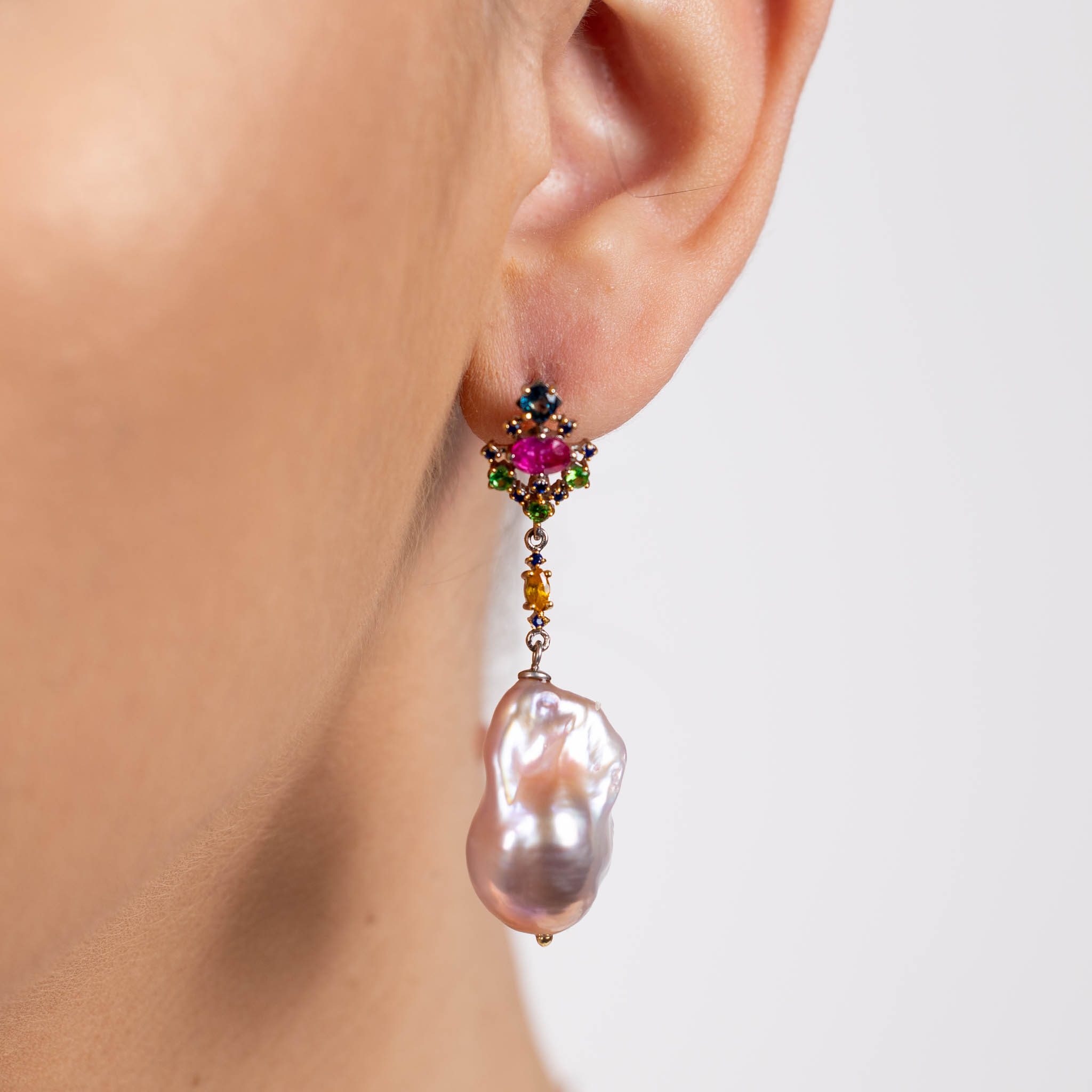 Cercei Argint 925, Perle Baroque , Safire Fancy, London Topaz, Tsavorite