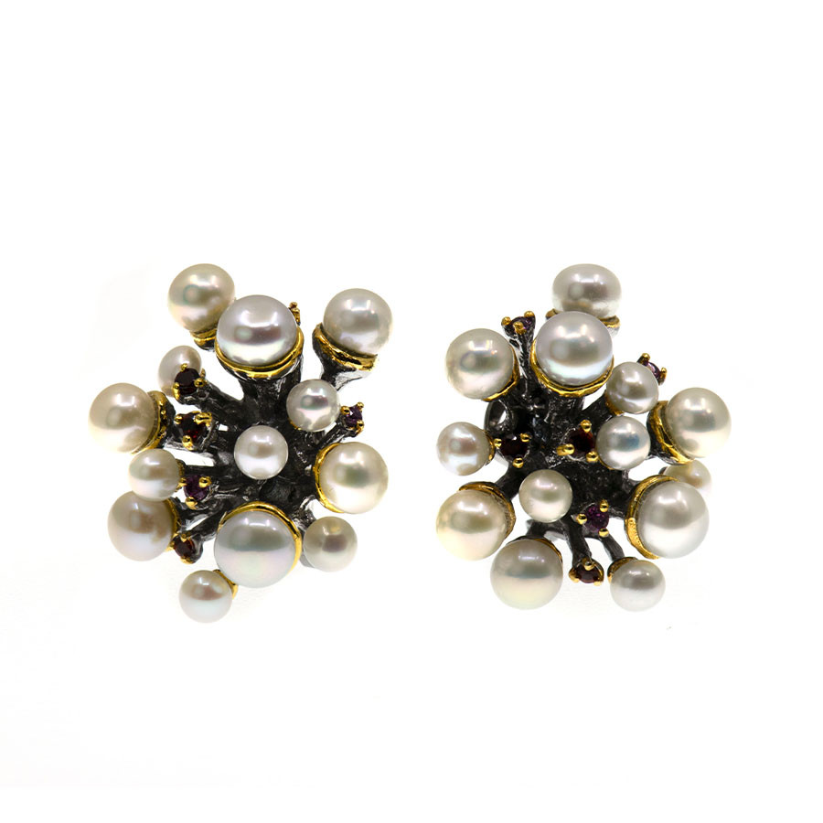 Cercei Argint 925, Perle, Rodolit, Granat