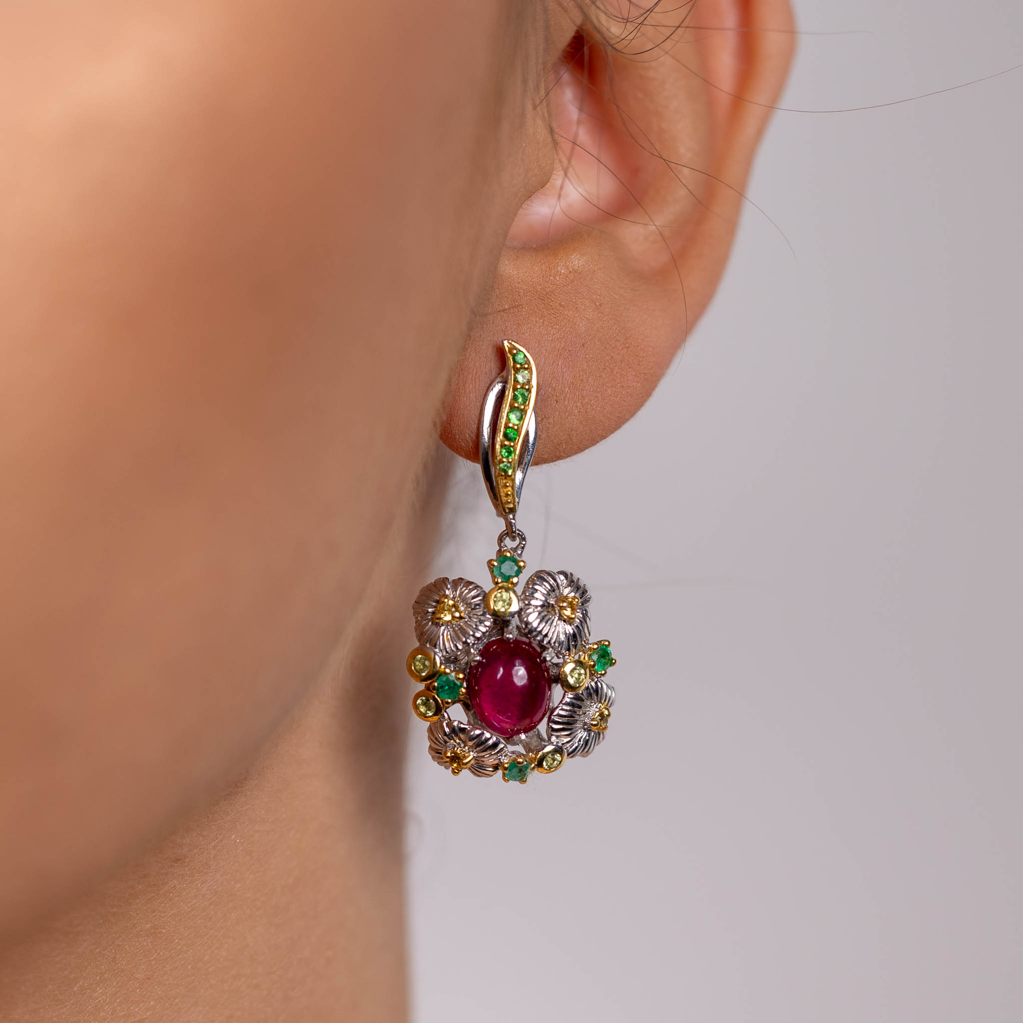 Cercei Argint 925, Rubin, Smaralde, Tsavorite, Safire,