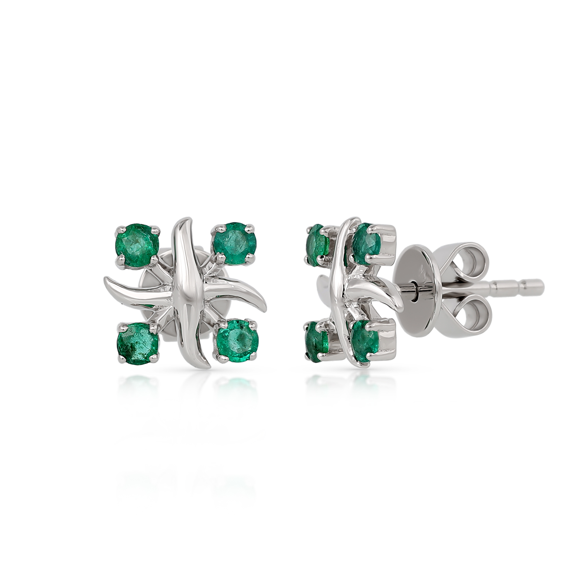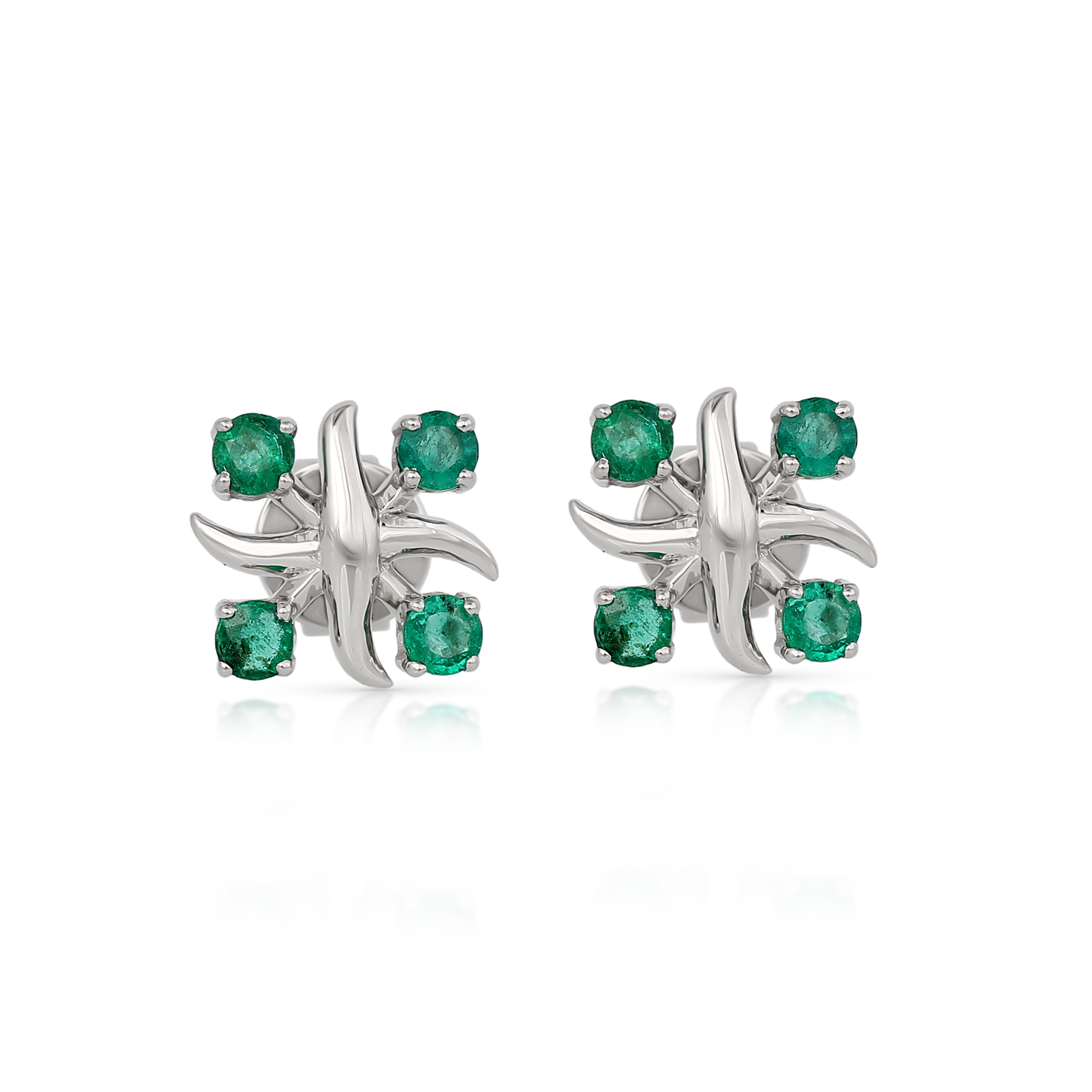 Cercei Aur Alb 14K, Smarald 0.38 Ct
