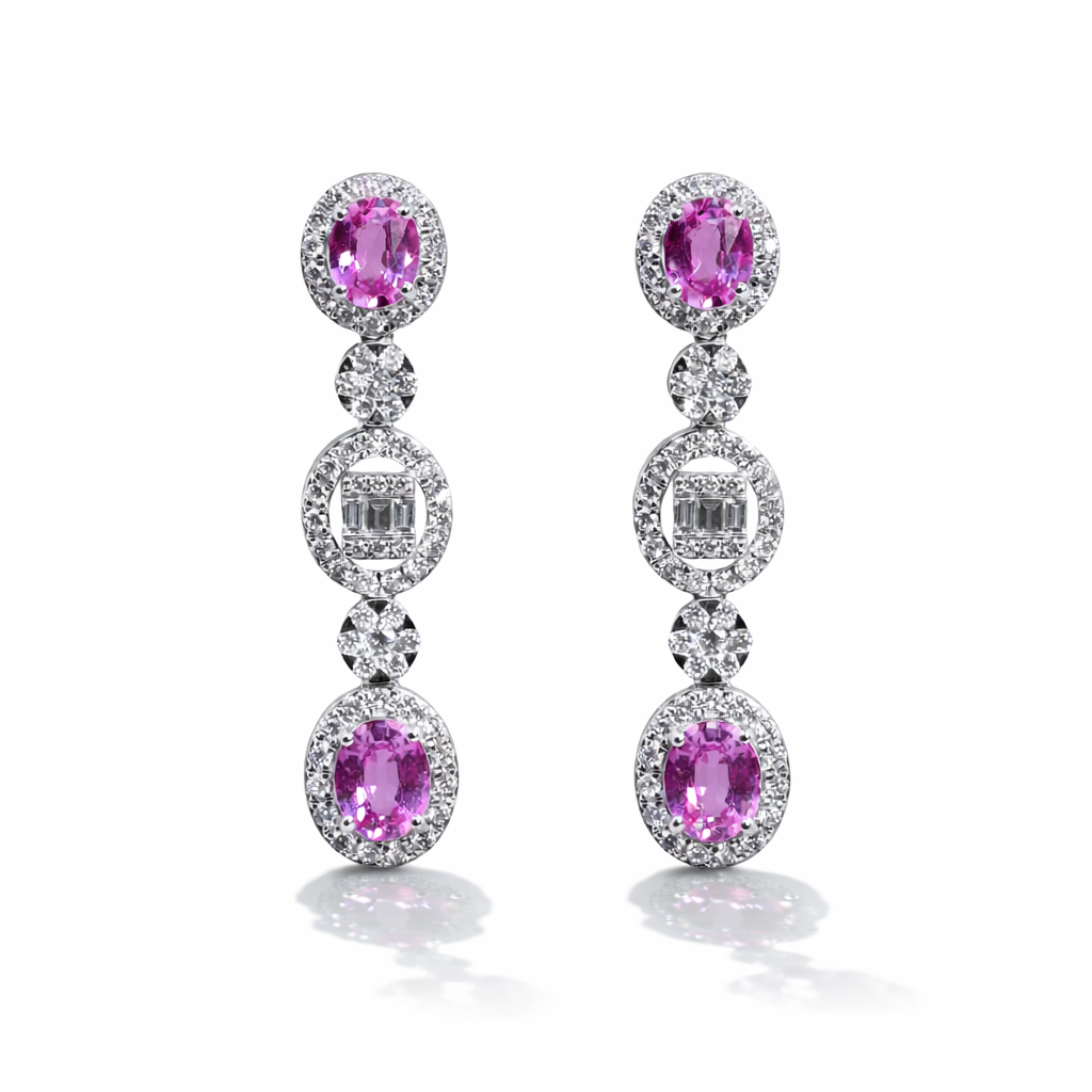 Cercei Aur Alb 18k, Safire Roz 2.65 ct, Diamante 1.45 ct