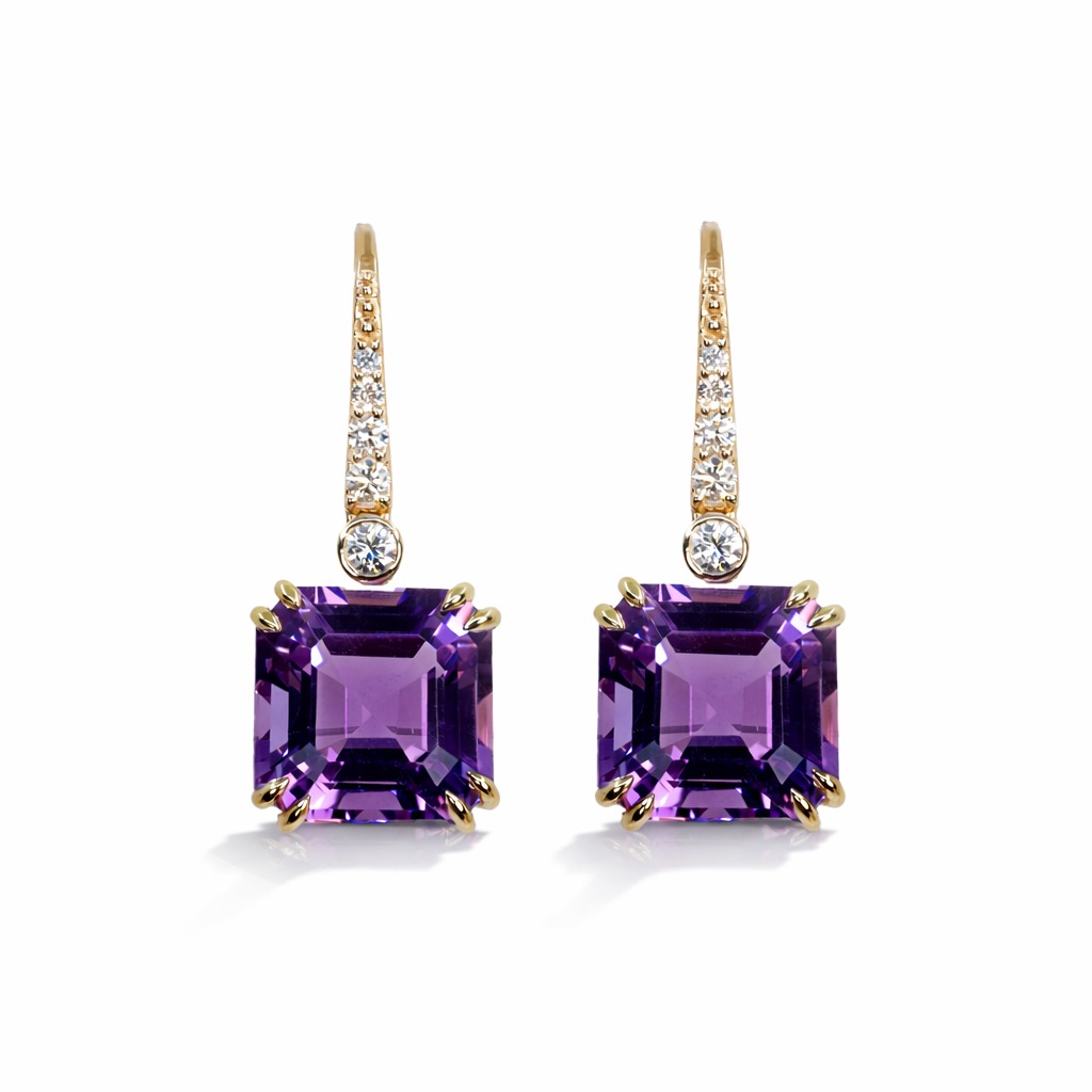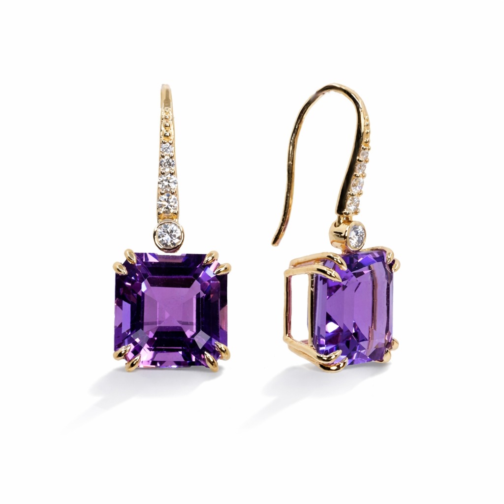 Cercei Aur Galben 14K, Ametist 11.00 Ct, Diamante 0.26 Ct