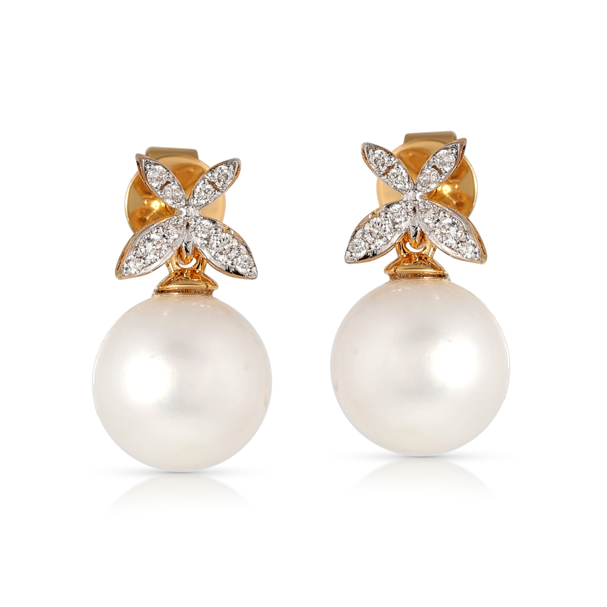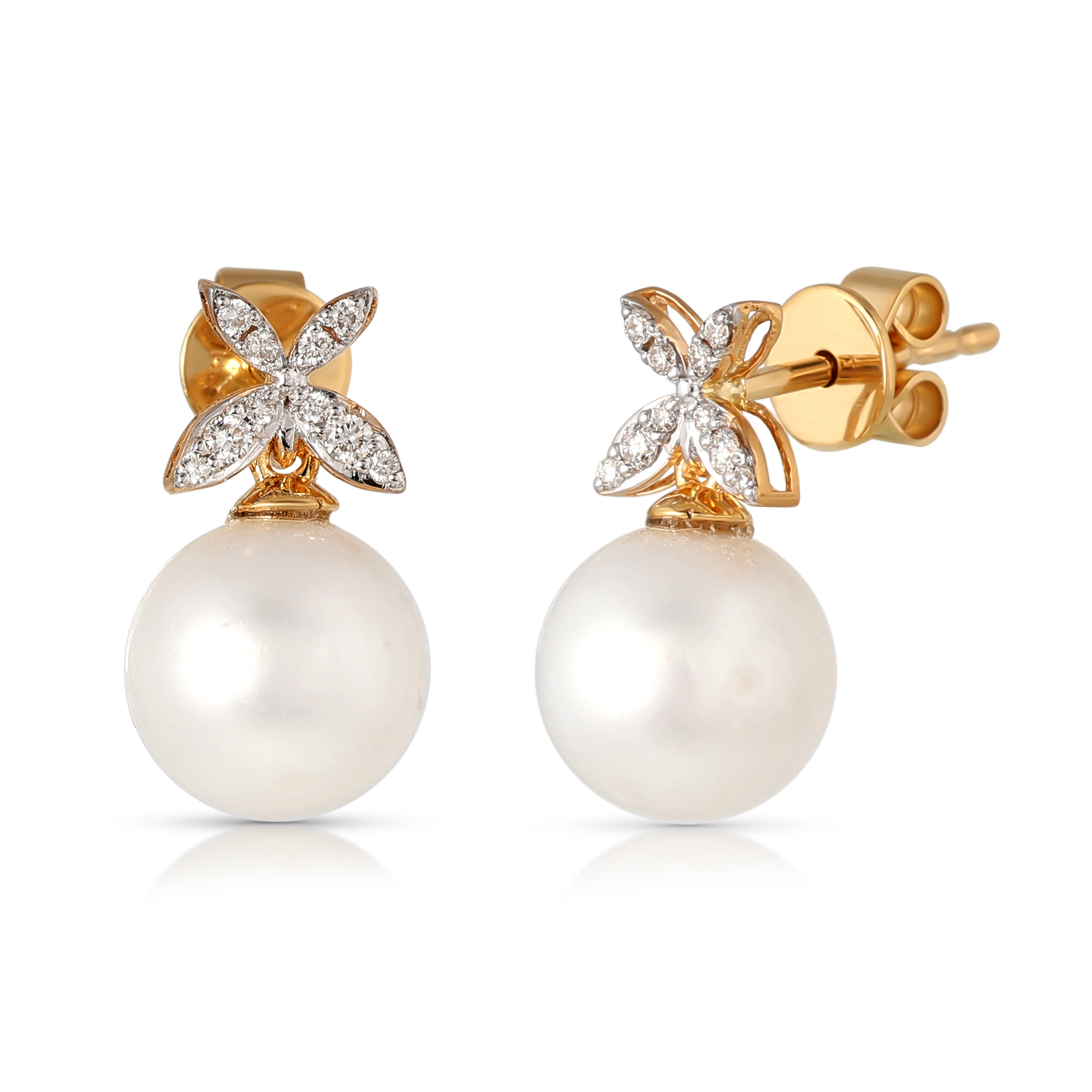 Cercei Aur Galben 14K, Perla 9.00 Ct , Diamante 0.13 Ct