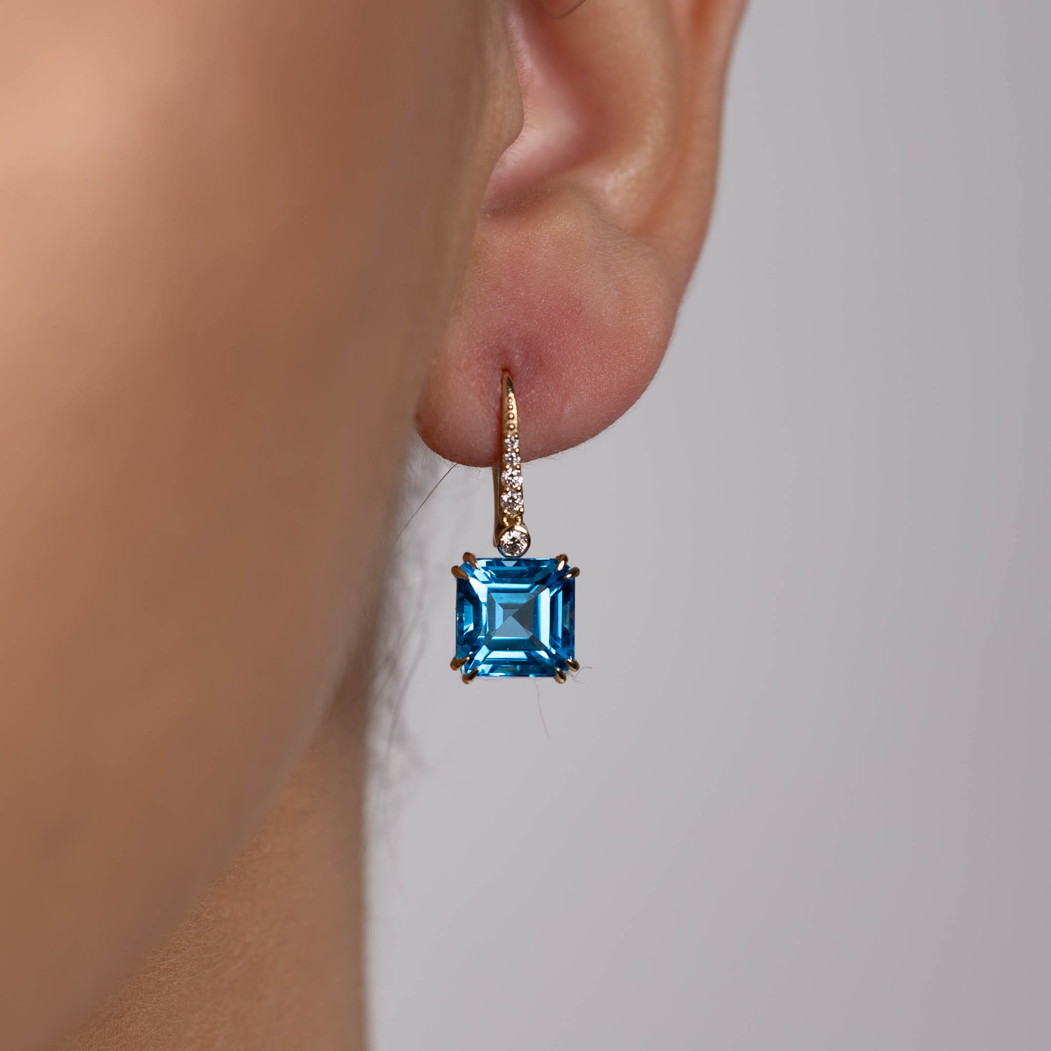 Cercei Aur Galben 14K, Swiss Topaz 12.10 Ct, Diamante 0.26 Ct