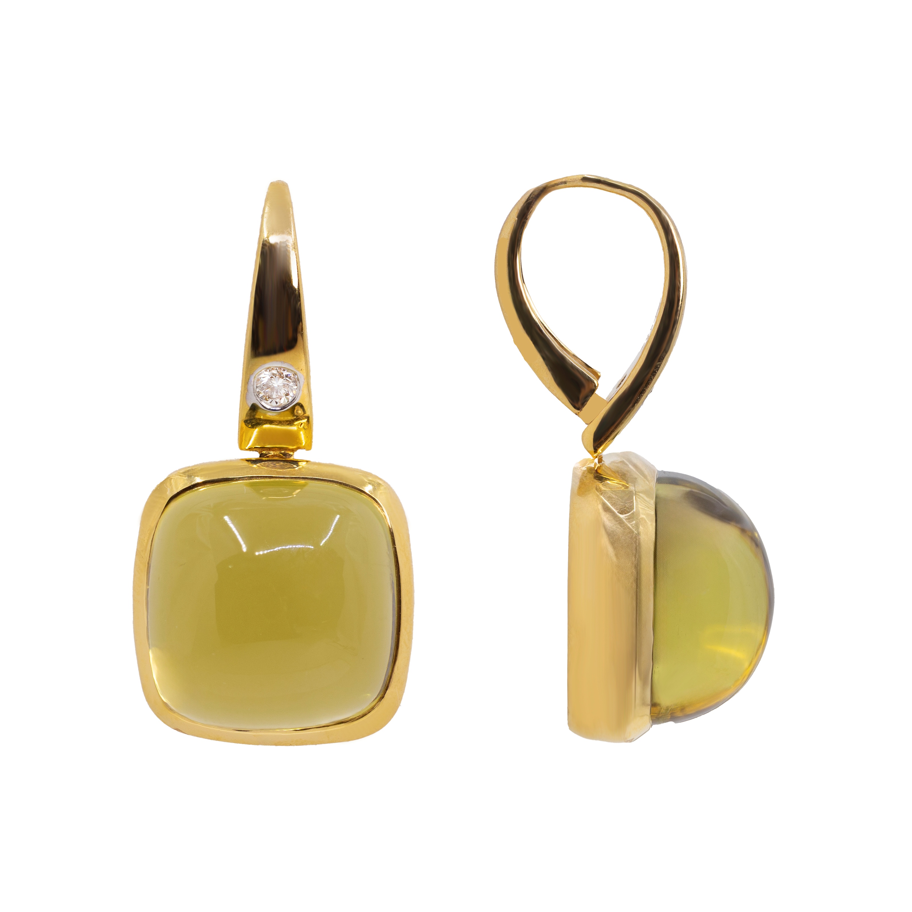 Cercei Aur Galben 18k, Lemon Cuart 24 ct, Diamante 0.08 ct