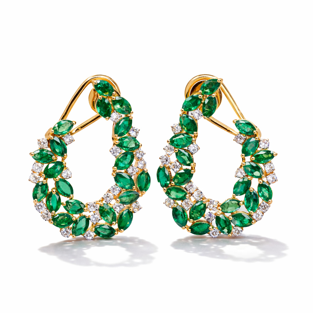 Cercei Aur Galben 18k, Smaralde 9.00 ct, Diamante 1.50 ct