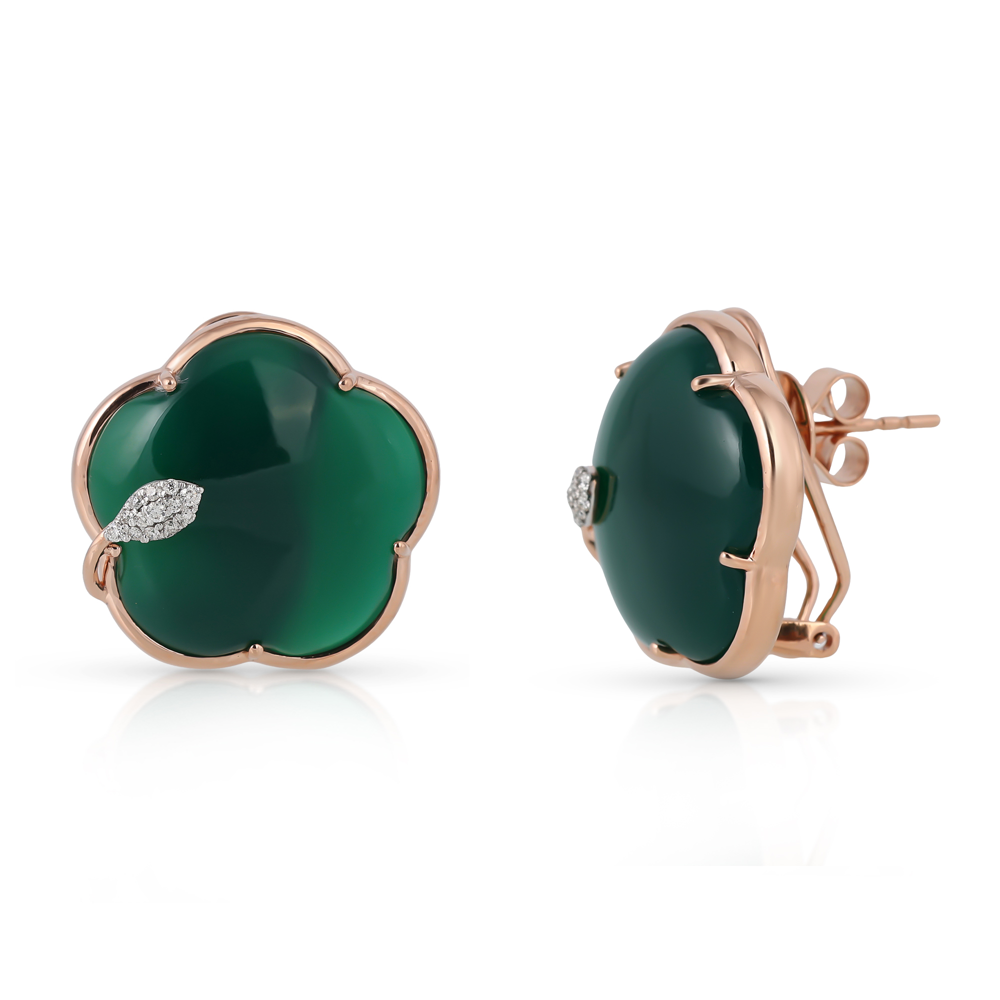 Cercei Aur Roz 14K, Onix Verde 27.40 Ct, Diamante 0.14 Ct