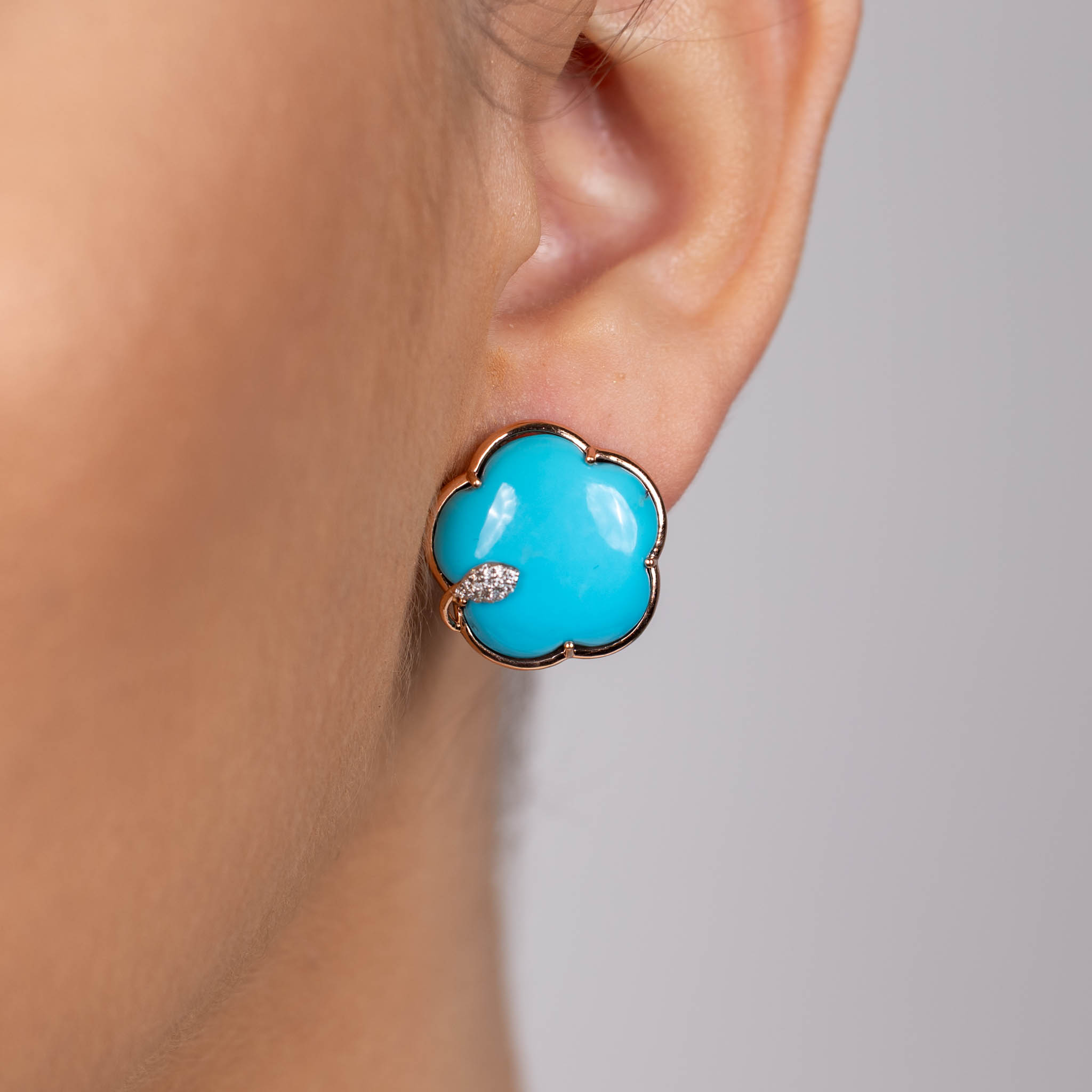 Cercei Aur Roz 14K, Turquoise 30.00 Ct, Diamante 0.14 Ct