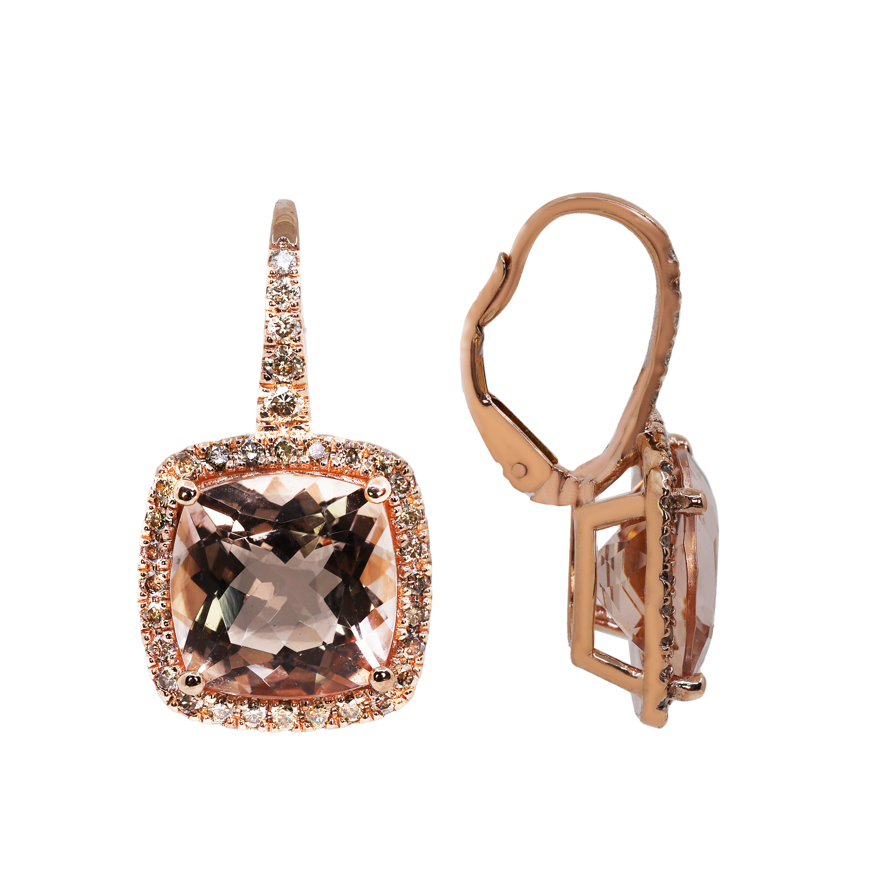 Cercei Aur Roz 18k, Morganit 7.60 Ct, Diamante Champagne 0.75 Ct