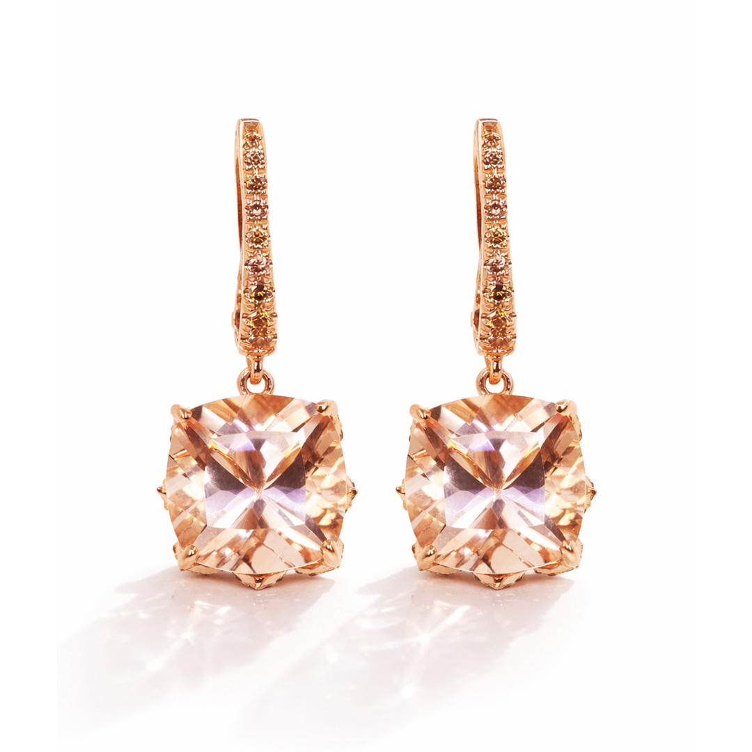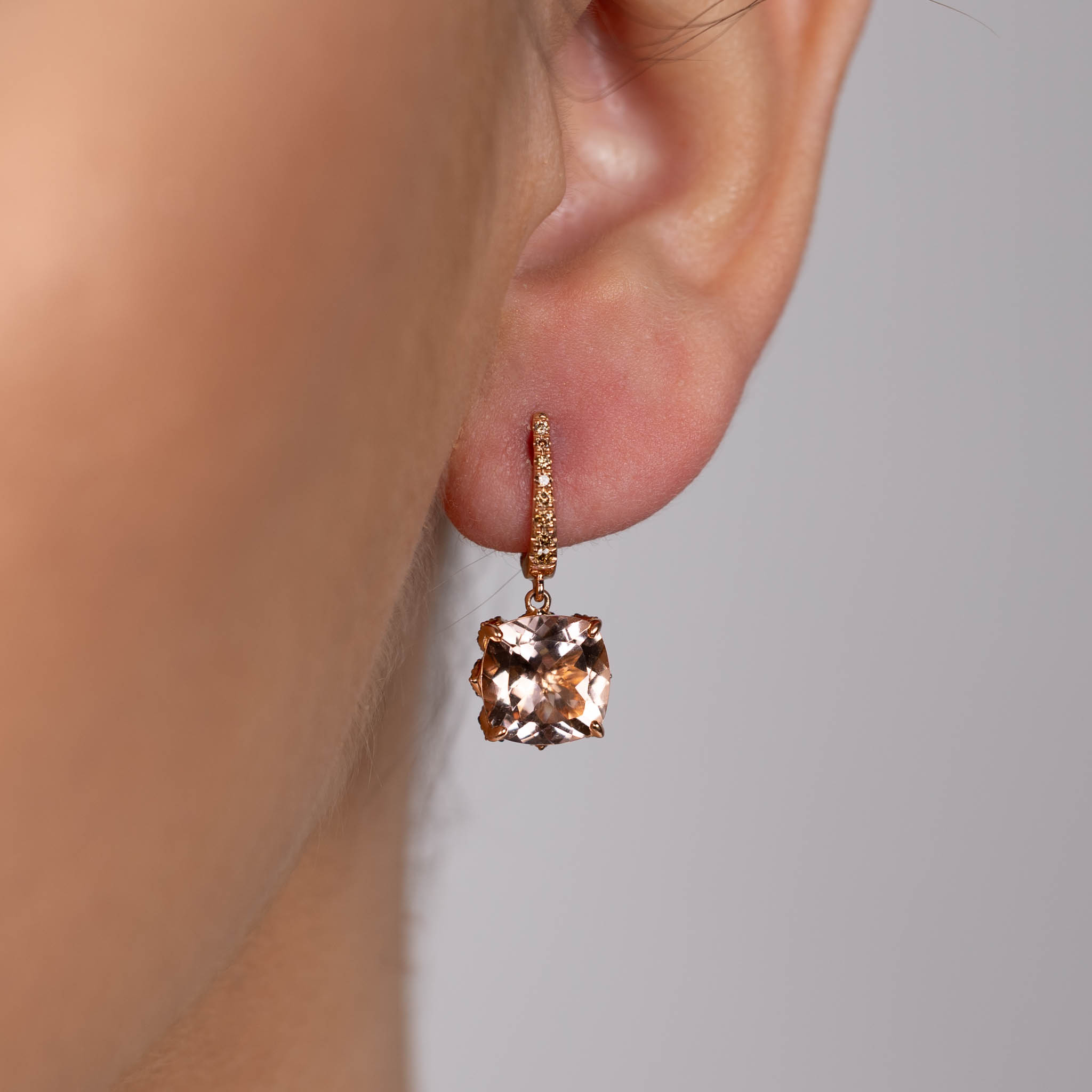 Cercei Aur Roz 18k, Morganit 7.60 Ct, Diamante Champagne 0.75 Ct
