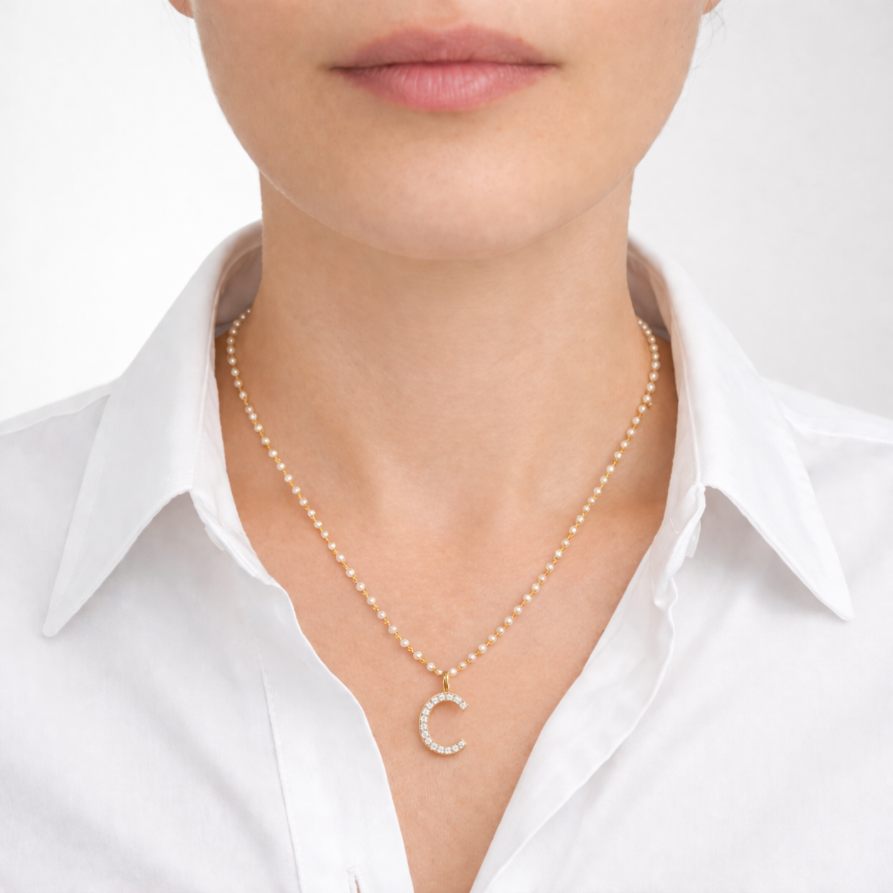 Colier Aur Galben 14K, Perle 11.20 Ct, Safire Albe 0.50 Ct, litera C