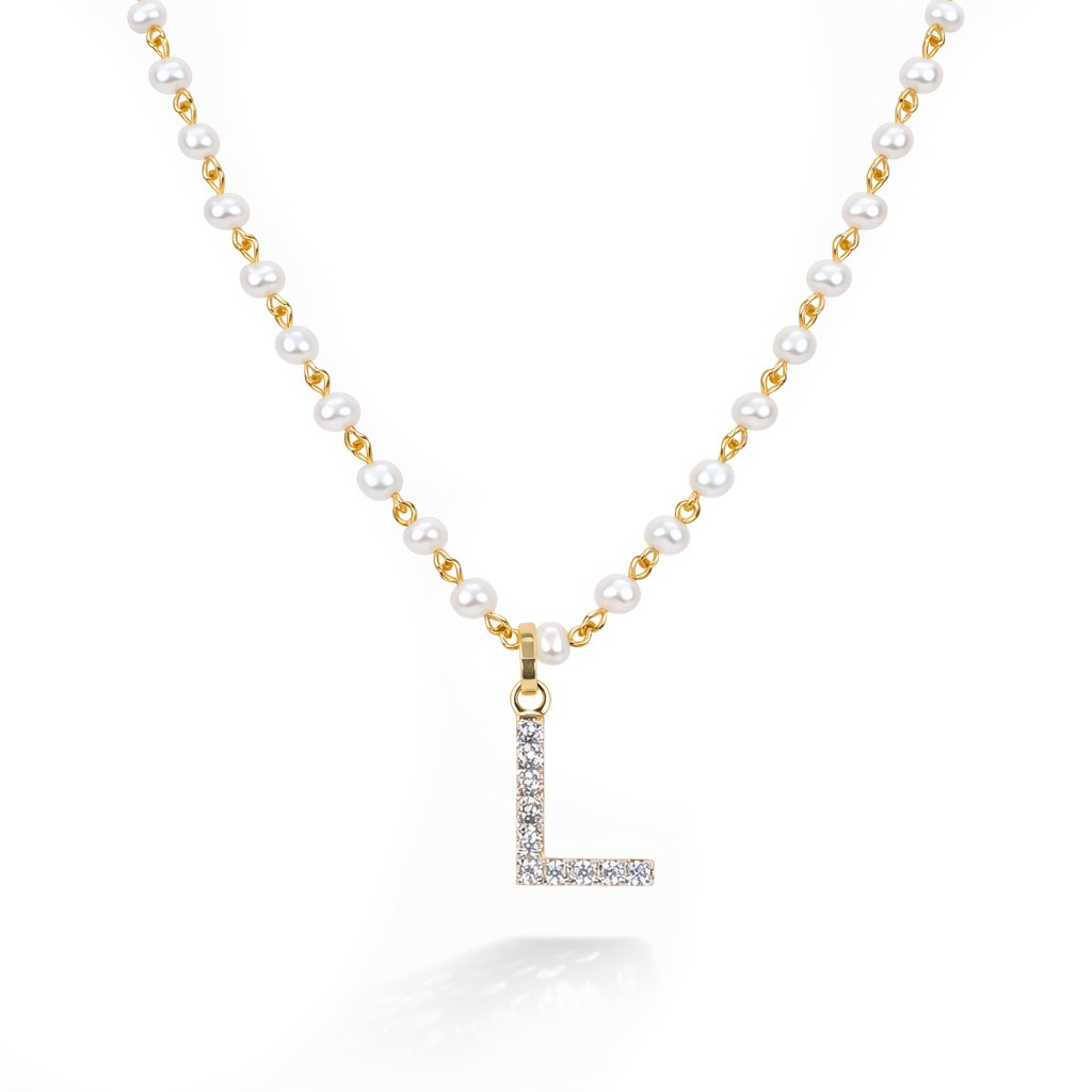 Colier Aur Galben 14K, Perle 11.20 Ct, Safire Albe 0.50 Ct, litera L