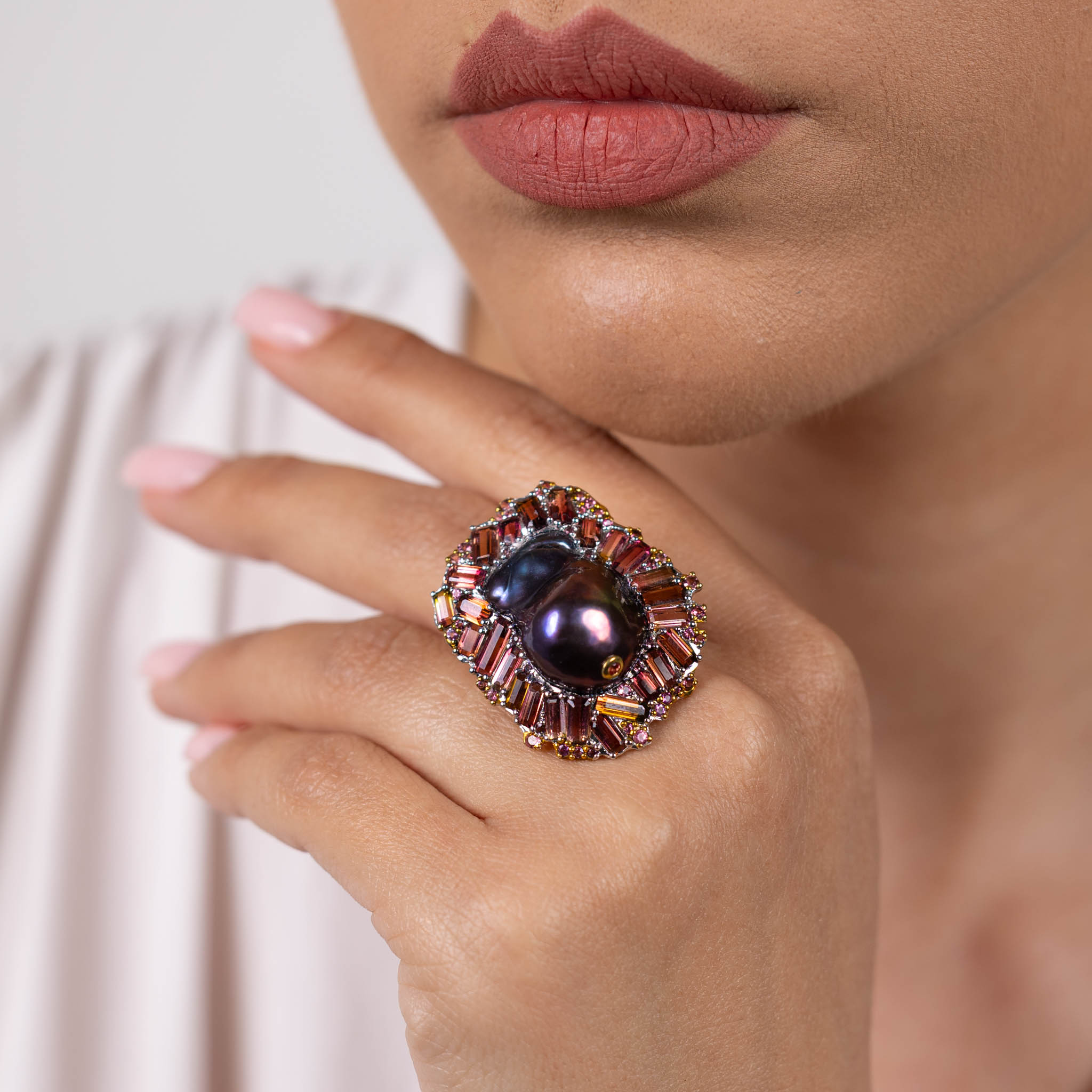 Inel Argint 925, Perla Baroque, Spinel,Turmalina