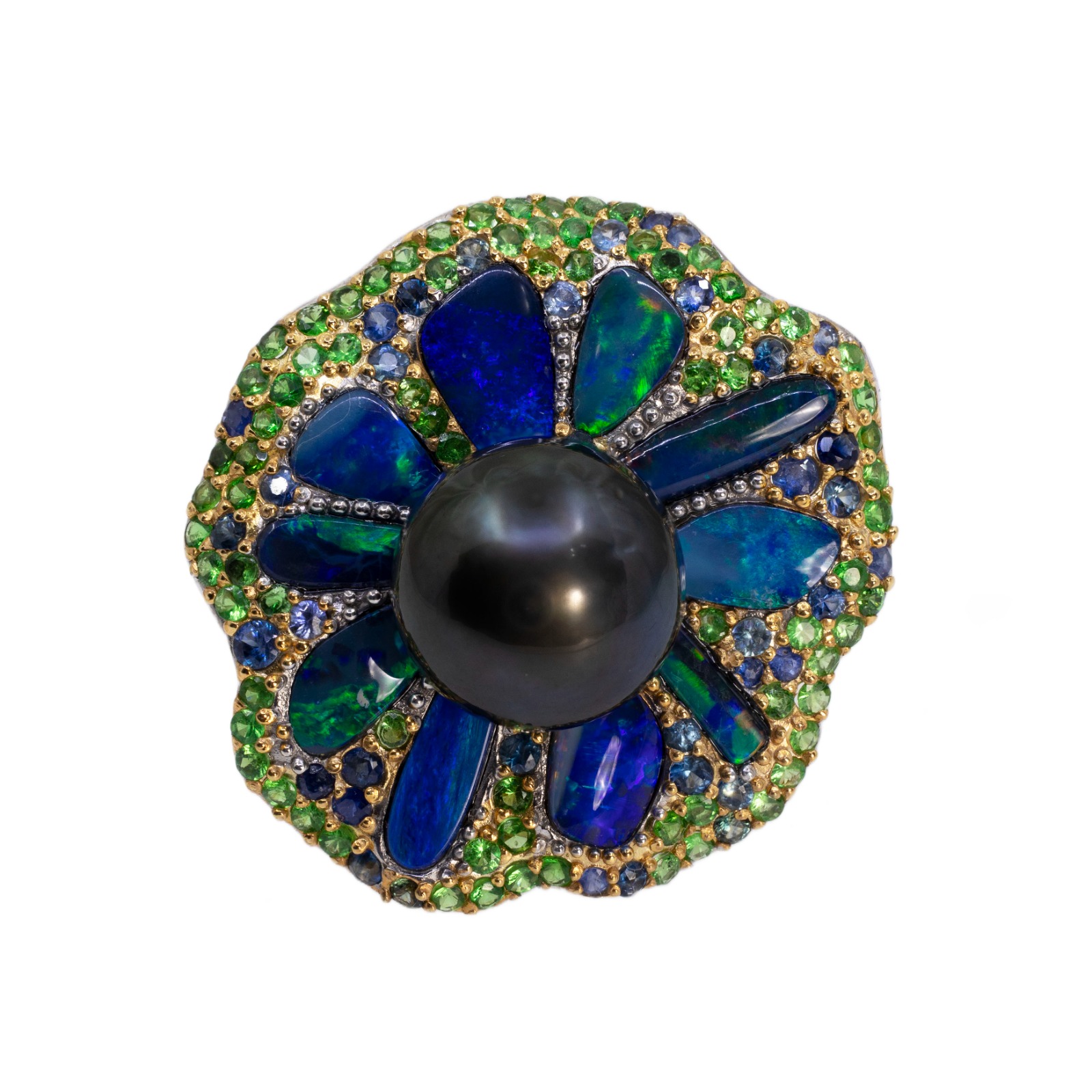 Inel Argint 925, Perla Tahiti, Opal Australian, Tsavorite, Safire