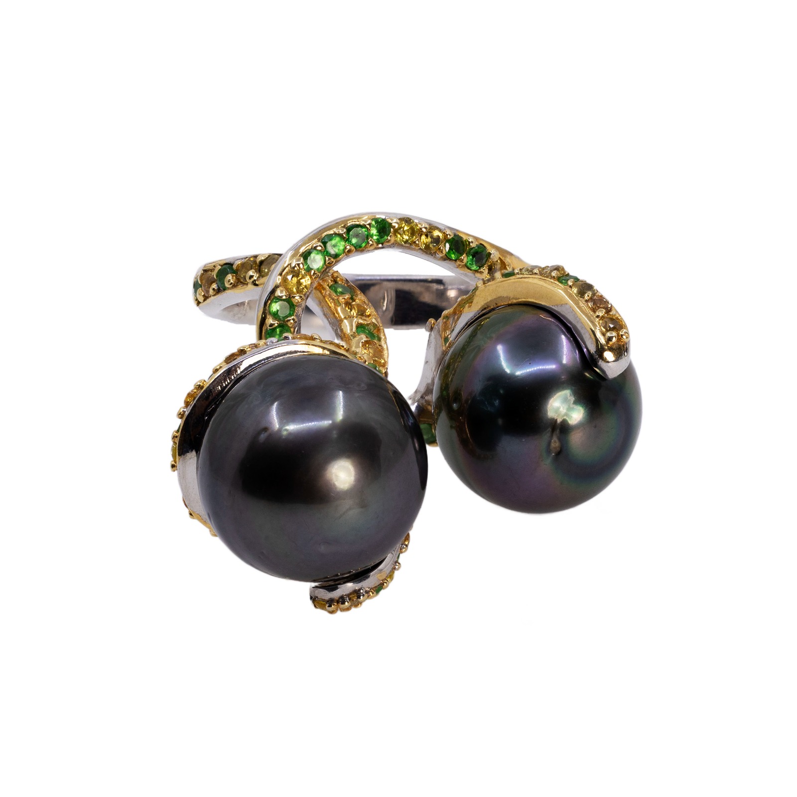 Inel Argint 925, Perle Tahiti, Safire Fancy, Tsavorite