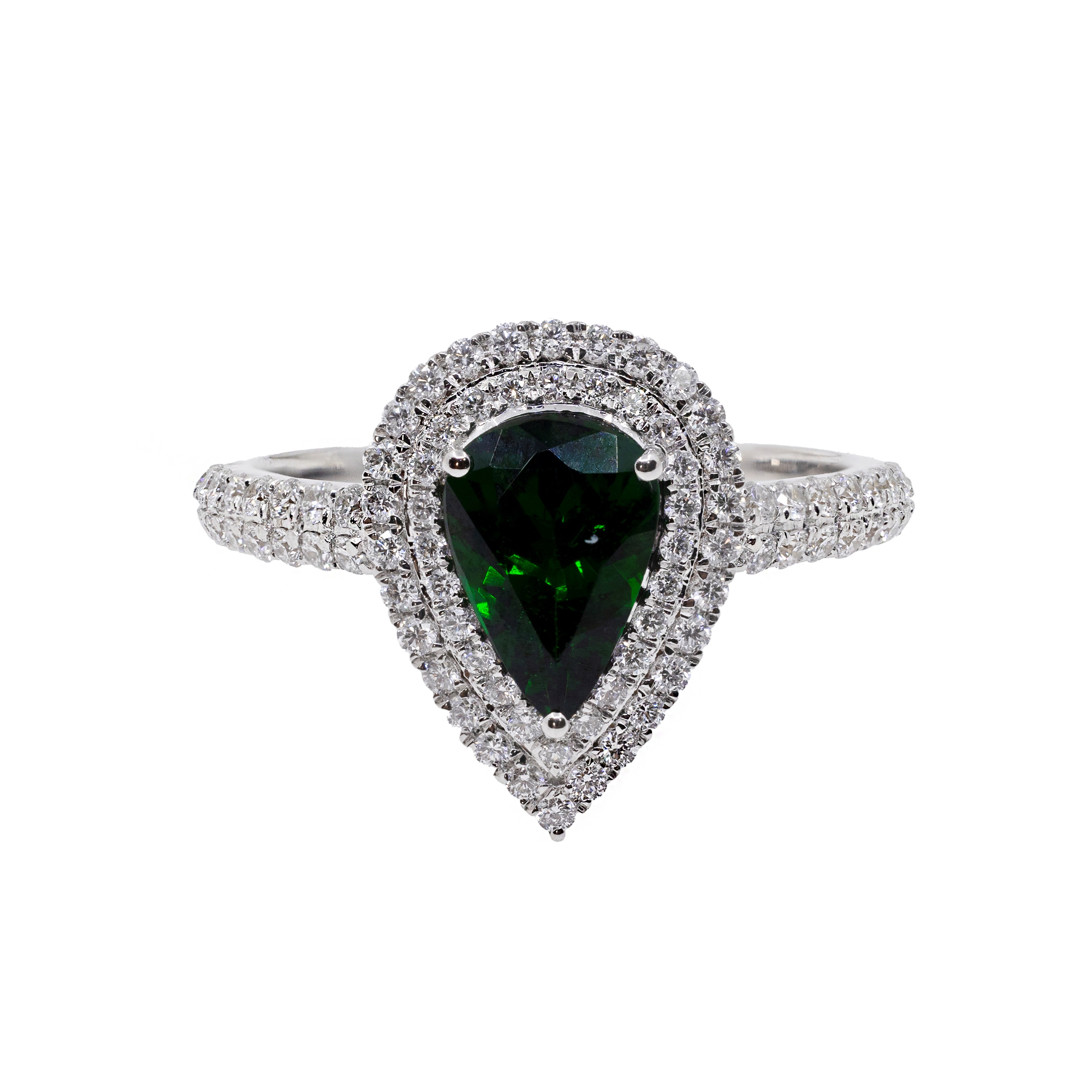 Inel Aur 18k, Tsavorit 1.32 ct, Diamante 0.56 ct