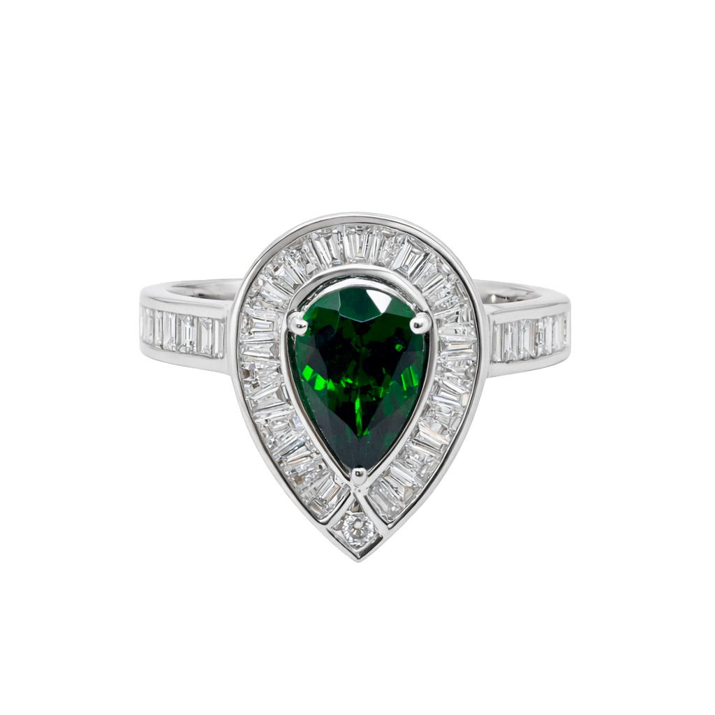 Inel Aur 18k, Tsavorit 1.50 ct, Diamante 0.84 ct
