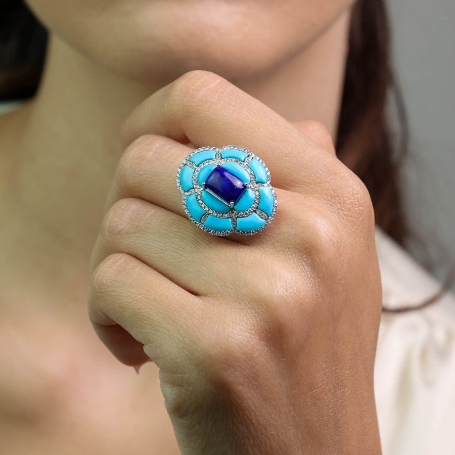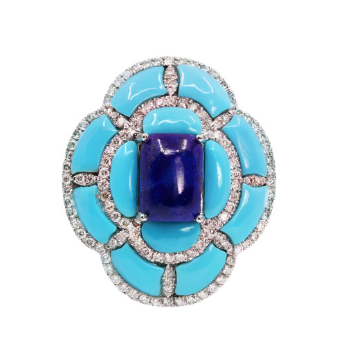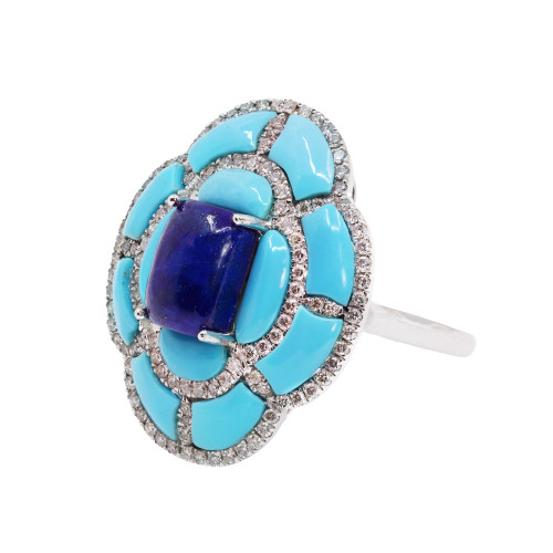 Inel Aur 18k, Turquoise 3.80 ct, Lapis Lazuli 2.65 ct, Diamante 0.70 ct