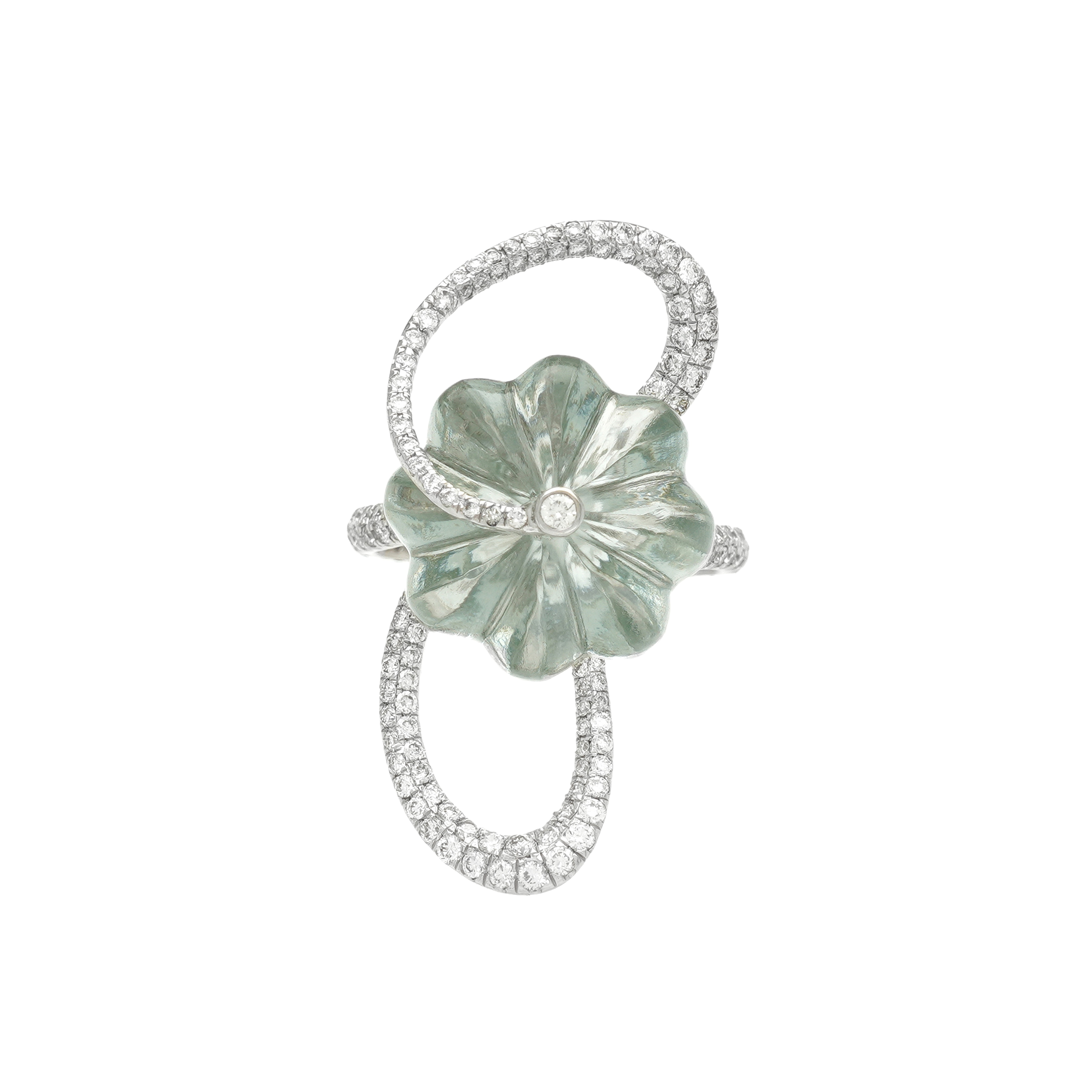 Inel Aur Alb 14k, Ametist Verde 16.10 ct, Diamante 1.18 ct