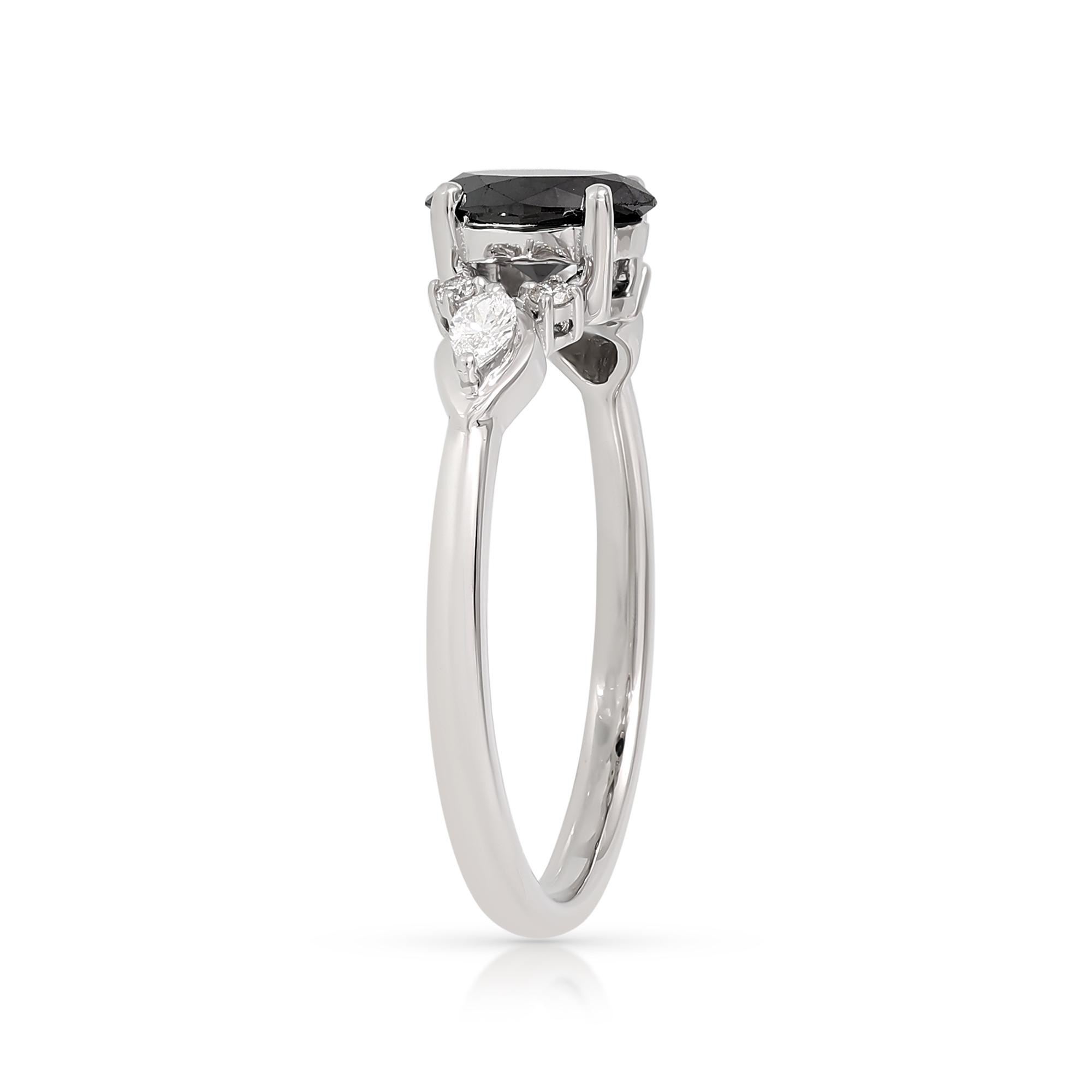 Inel Aur Alb 14k, Diamant Negru 0.85 Ct, Diamante Albe 0.18 Ct