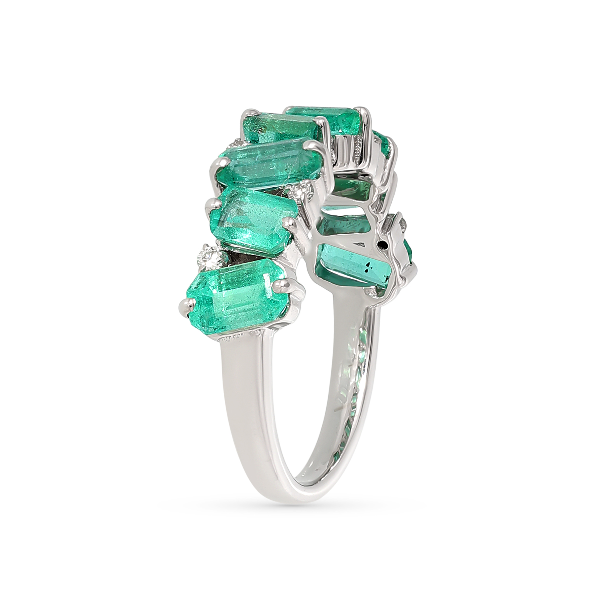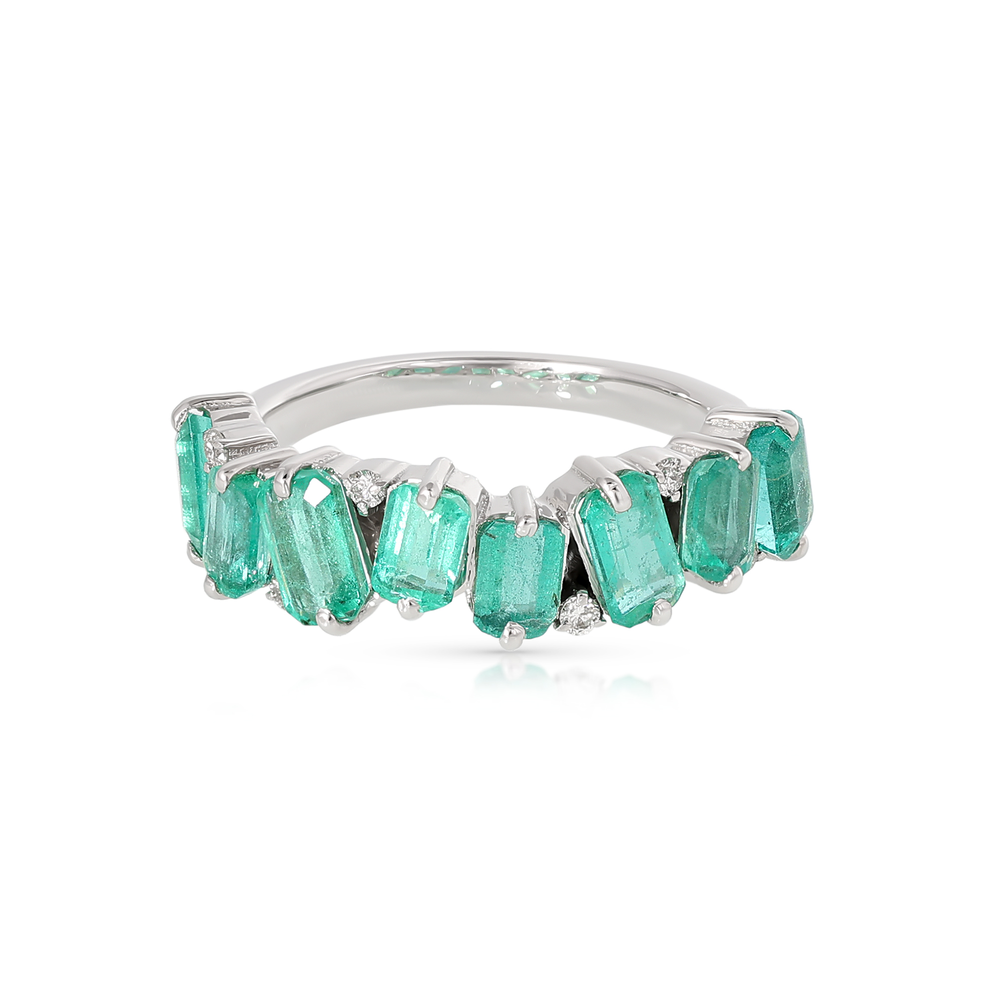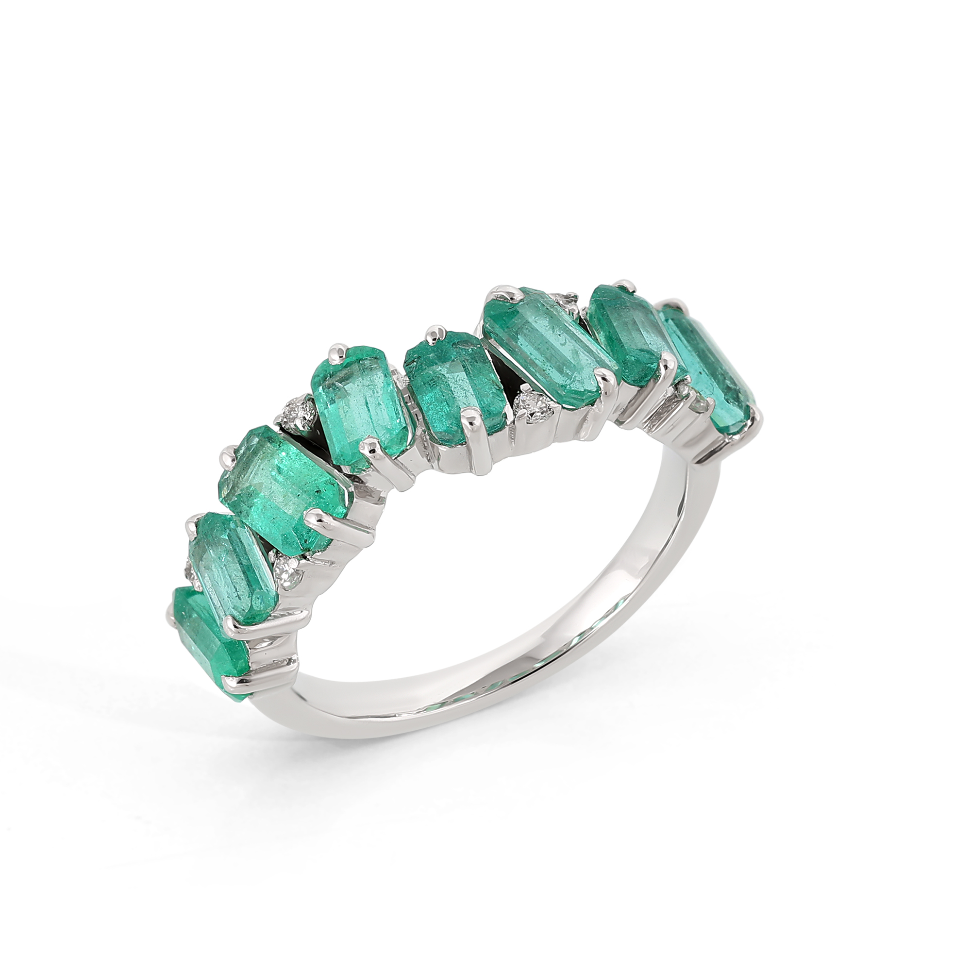 Inel Aur Alb 14K, Smaralde 2.15 Ct , Diamante 0.08 Ct