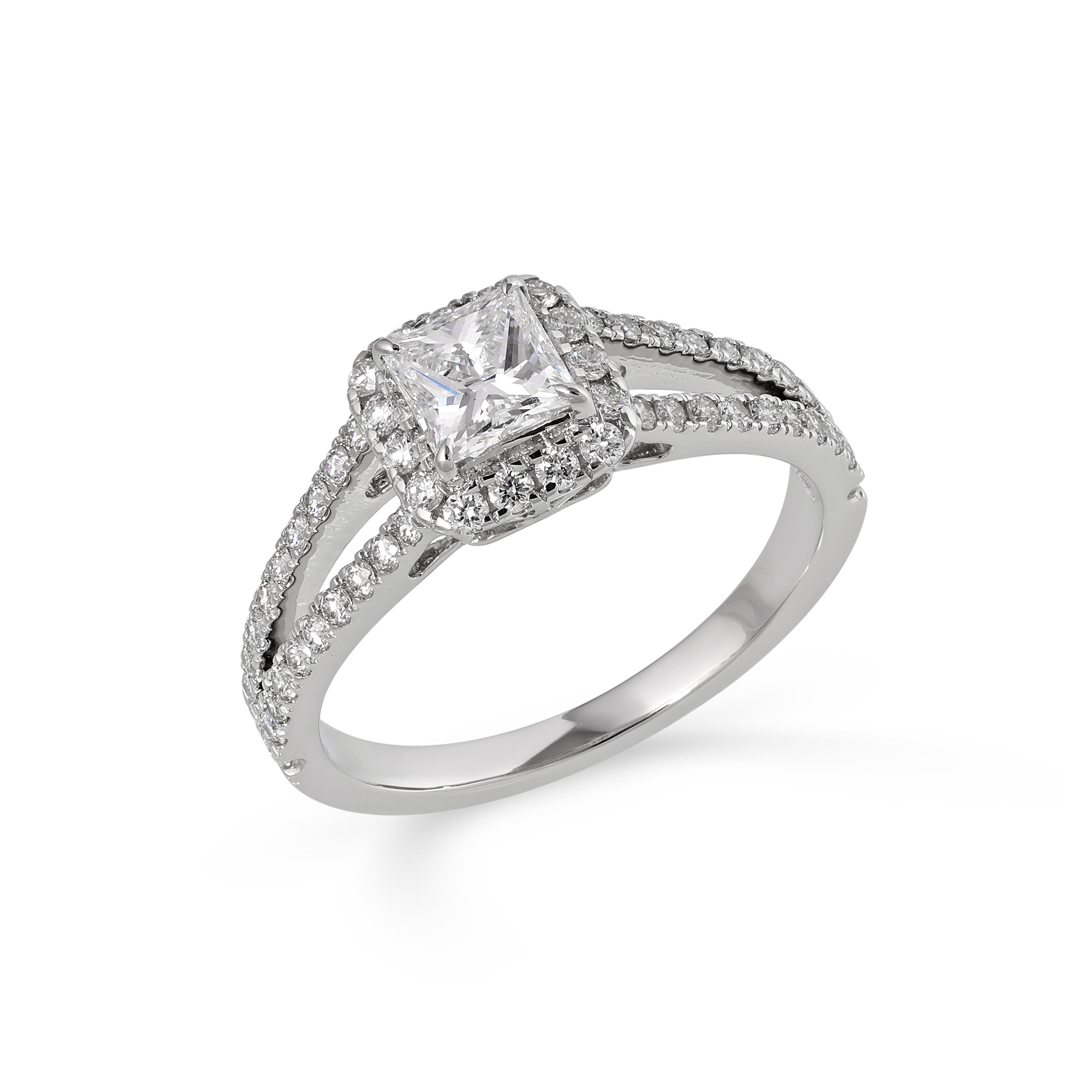 Inel Aur Alb 18k, Diamant Central 0.51 Ct D/VS2, Diamante Laterale 0.58 Ct