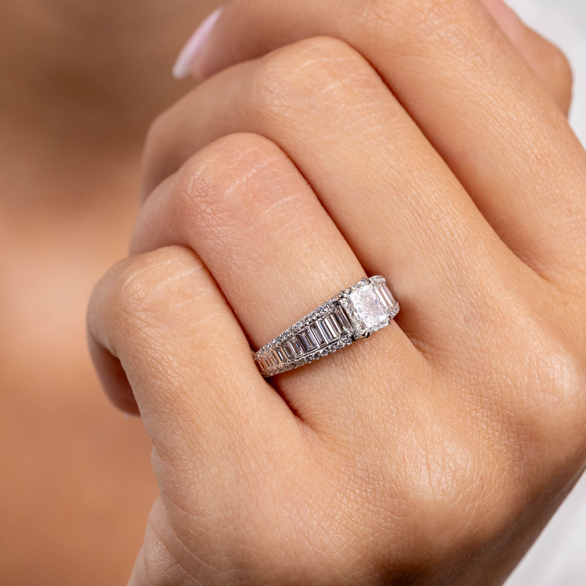 Inel Aur Alb 18k, Diamant Central 0.90 Ct F/VS2, Diamante Laterale 1.12 Ct