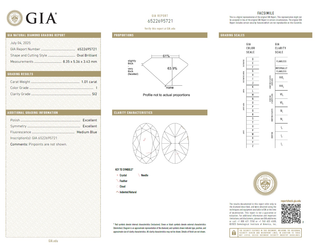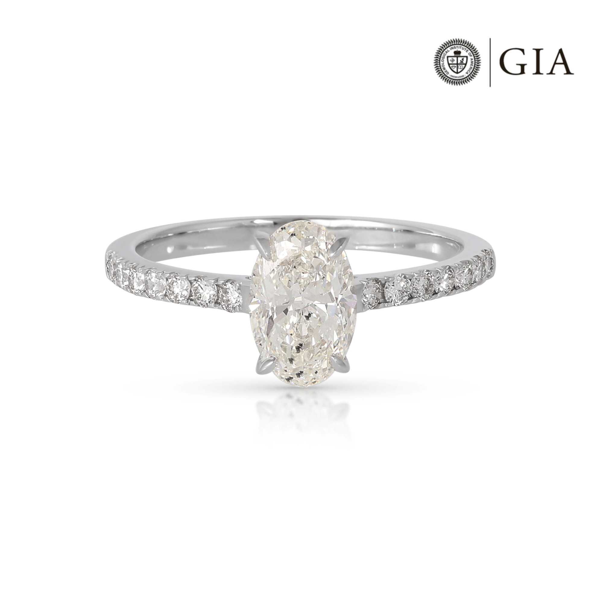 Inel Aur Alb 18k, Diamant Solitaire 1.01 Ct I/SI2, Diamante Laterale 0.28 Ct
