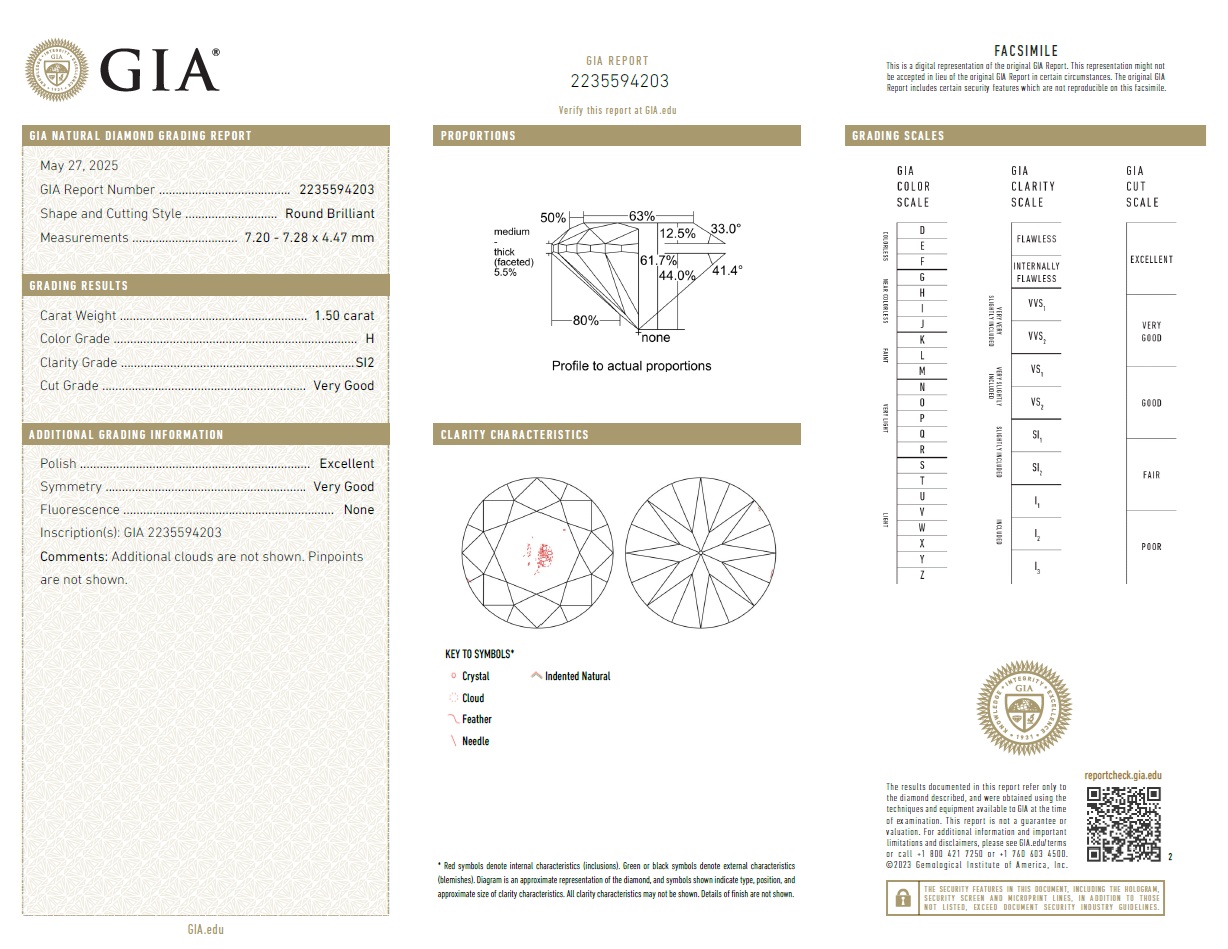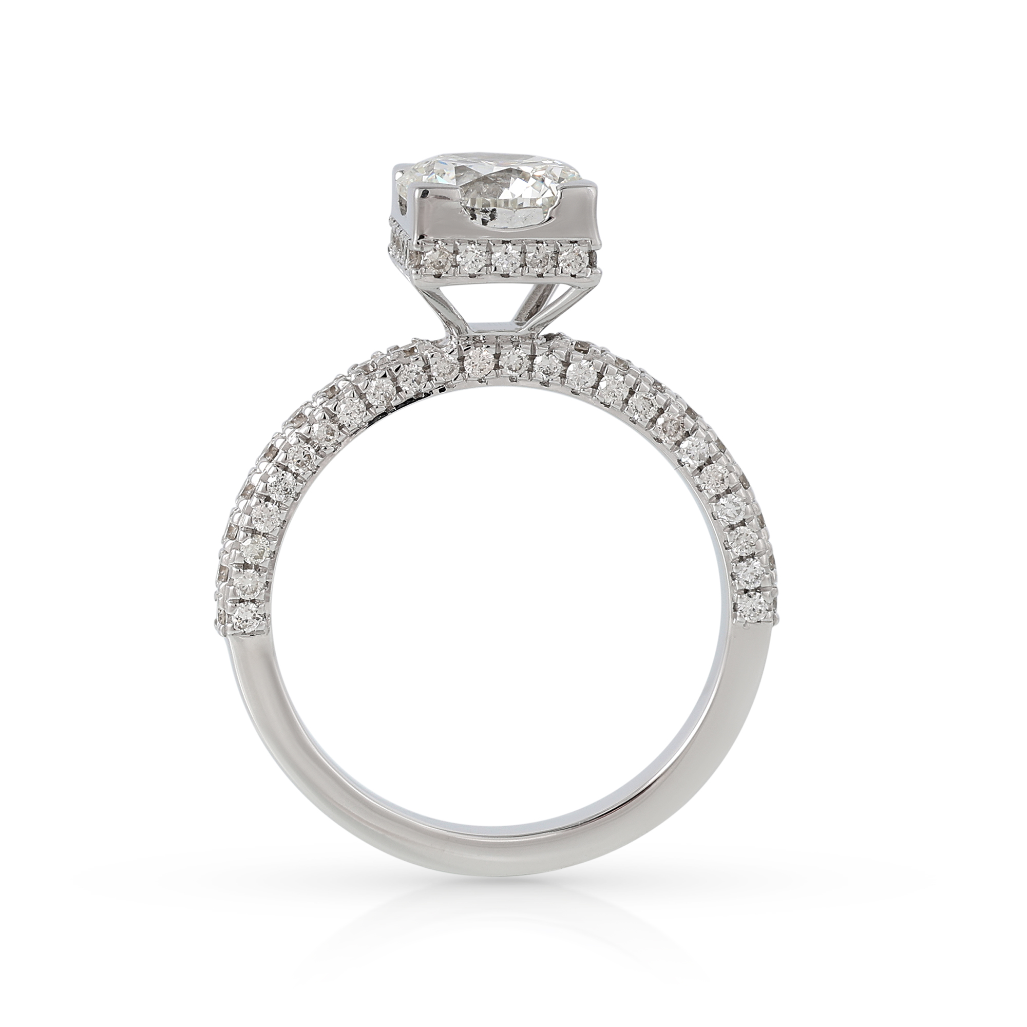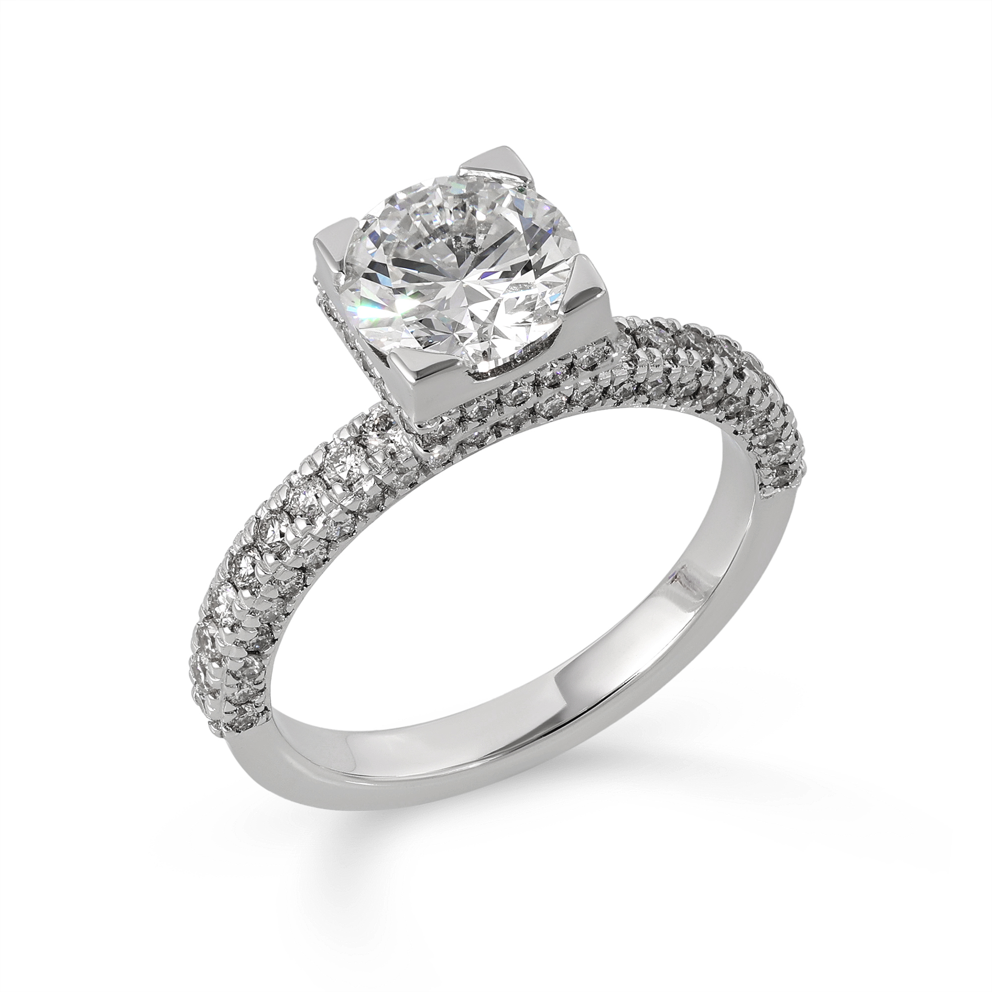 Inel Aur Alb 18k, Diamant Solitaire 1.50 Ct H/SI2, Diamante Laterale 0.75 Ct