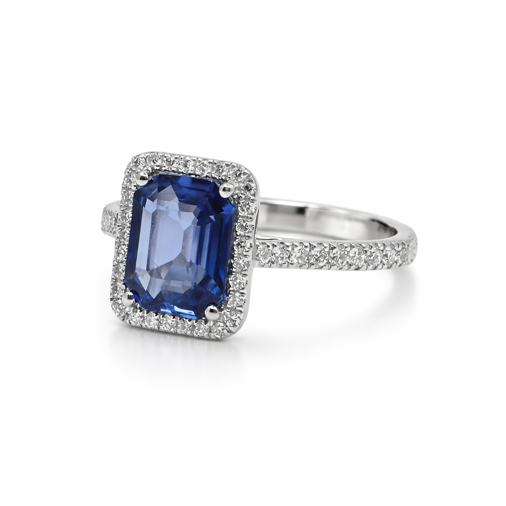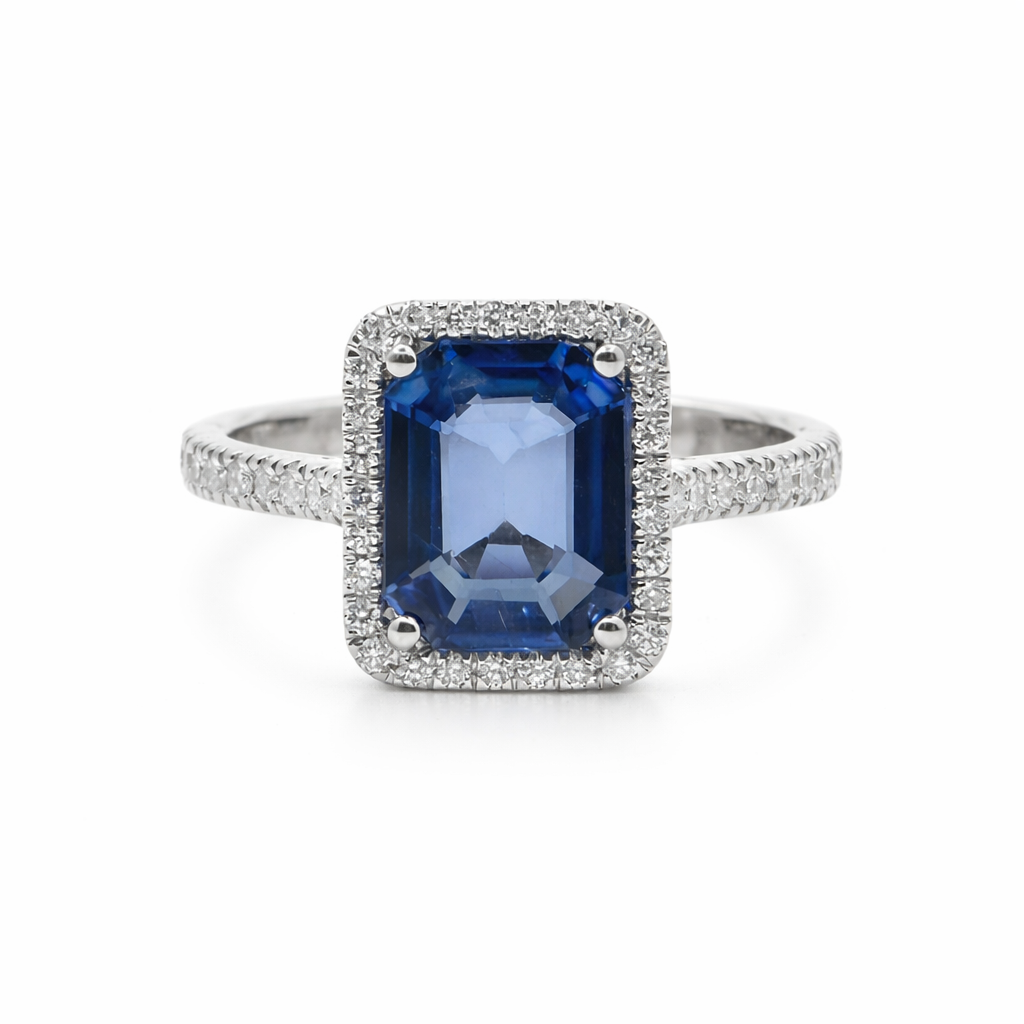 Inel Aur Alb 18k, Safir 2.20 Ct, Diamante 0.43 Ct