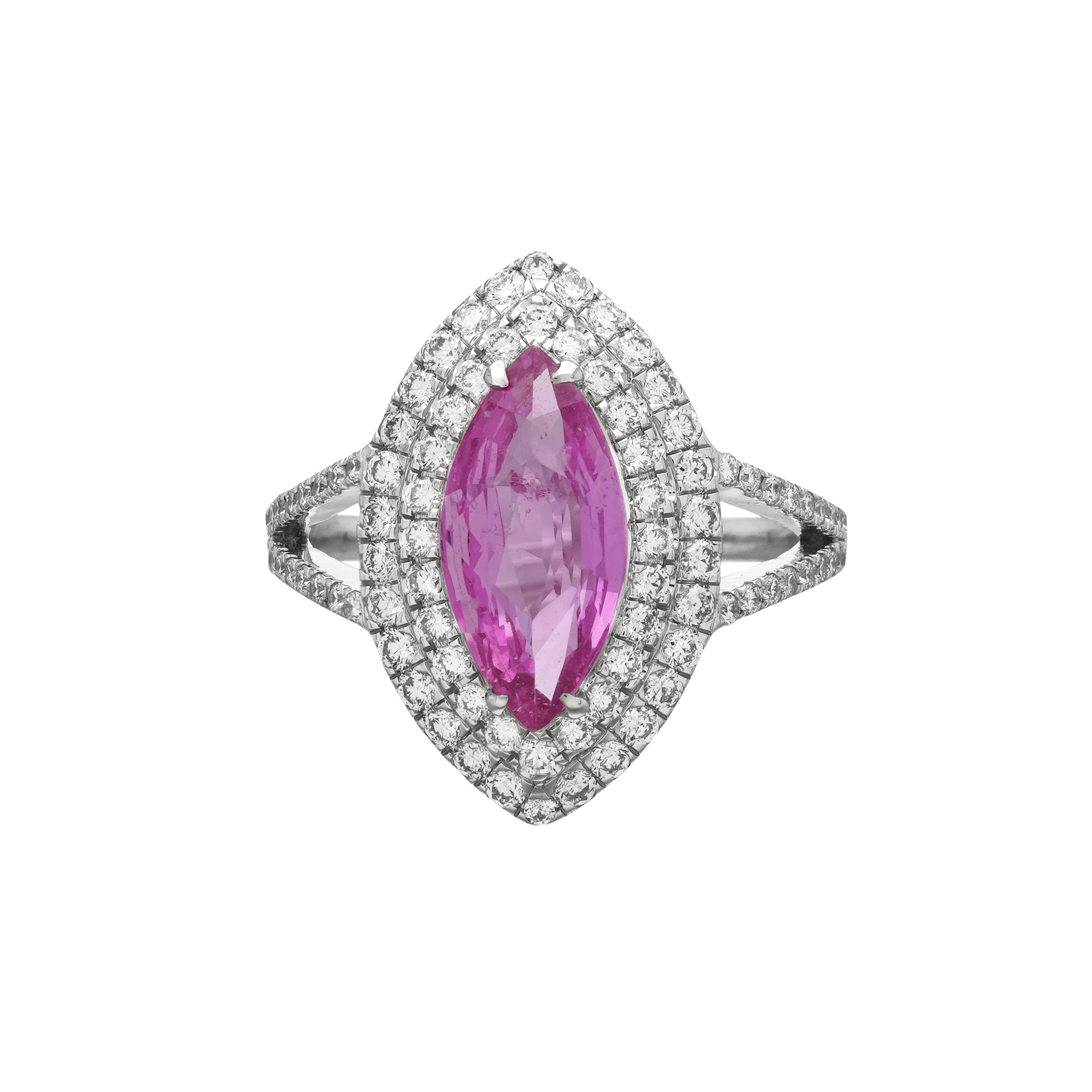 Inel Aur Alb 18k, Safir Roz 1.81 ct, Diamante 0.70 ct