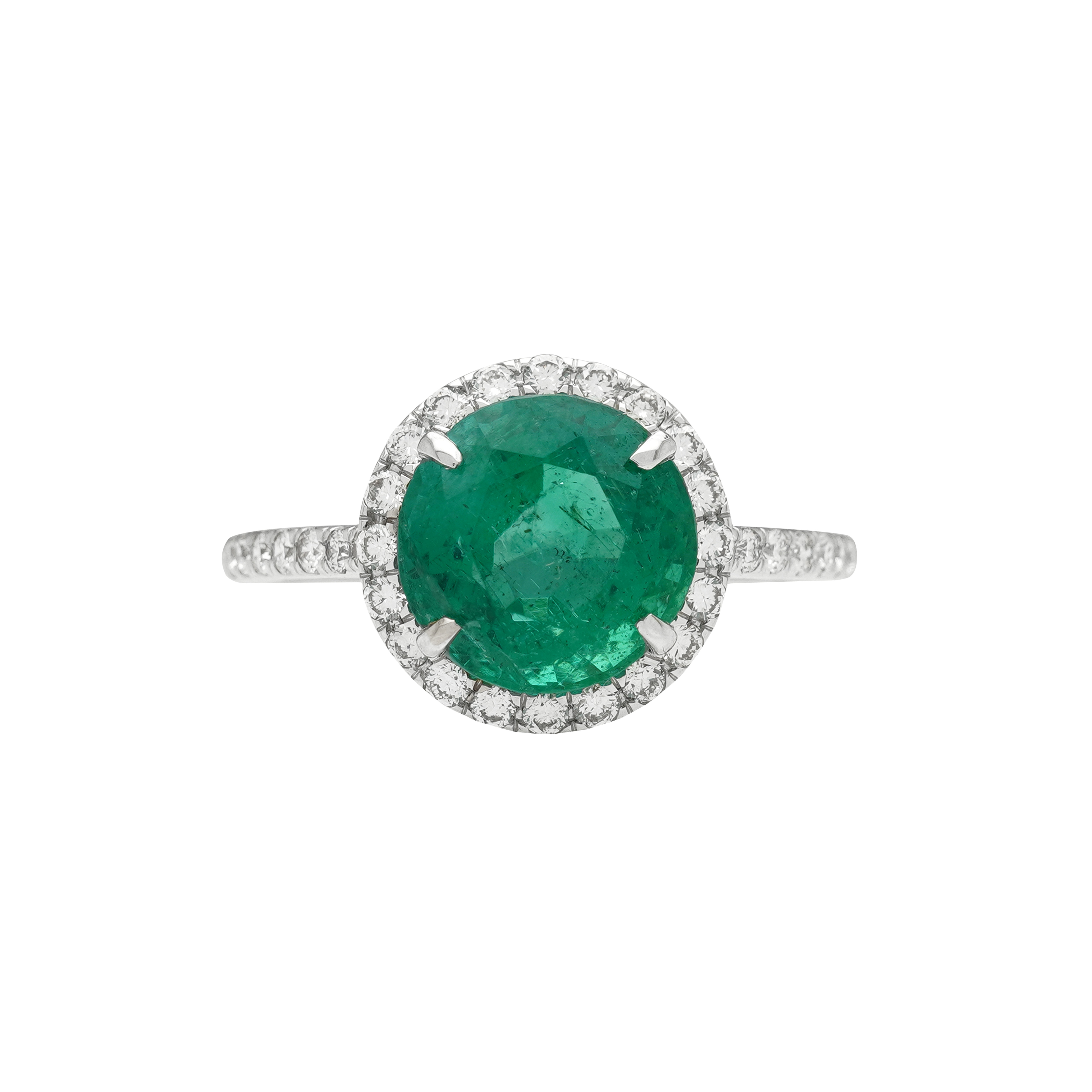 Inel Aur Alb 18k, Smarald 2.30 ct, Diamante 0.32 ct