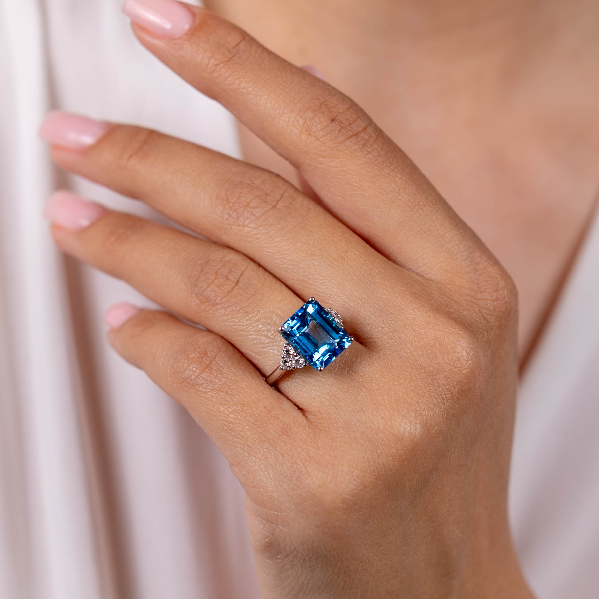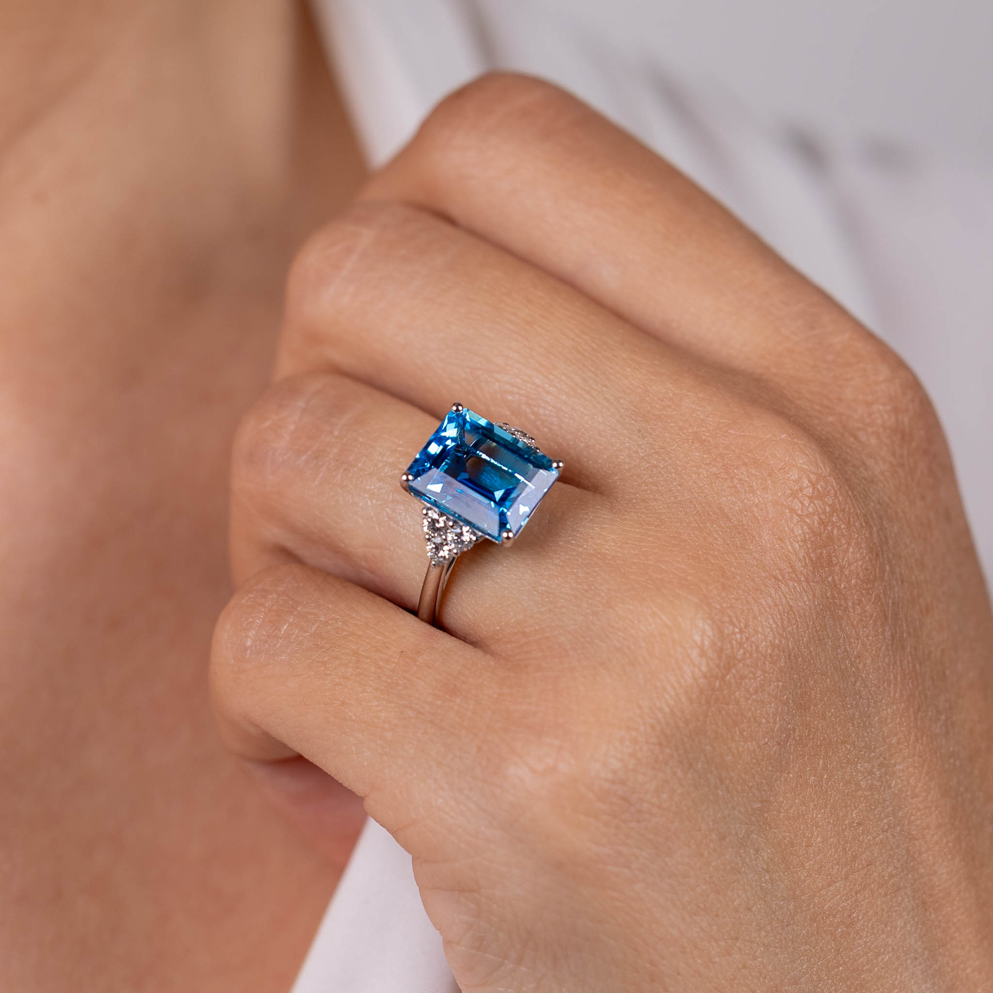 Inel Aur Alb 18k, Swiss Topaz 8.90 Ct, Diamante 0.46 Ct