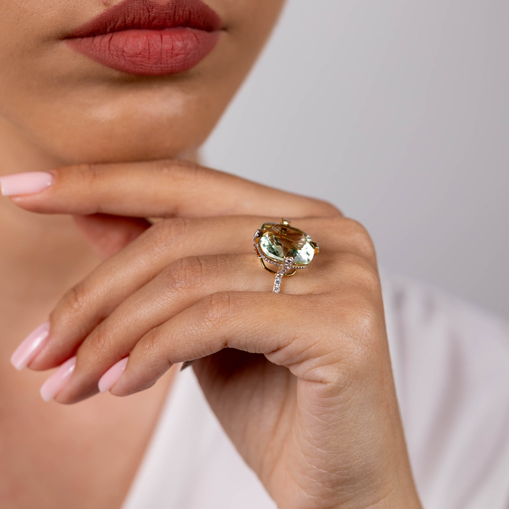 Inel Aur Galben 14K, Ametist Verde 16.15 ct, Diamante 0.75 ct