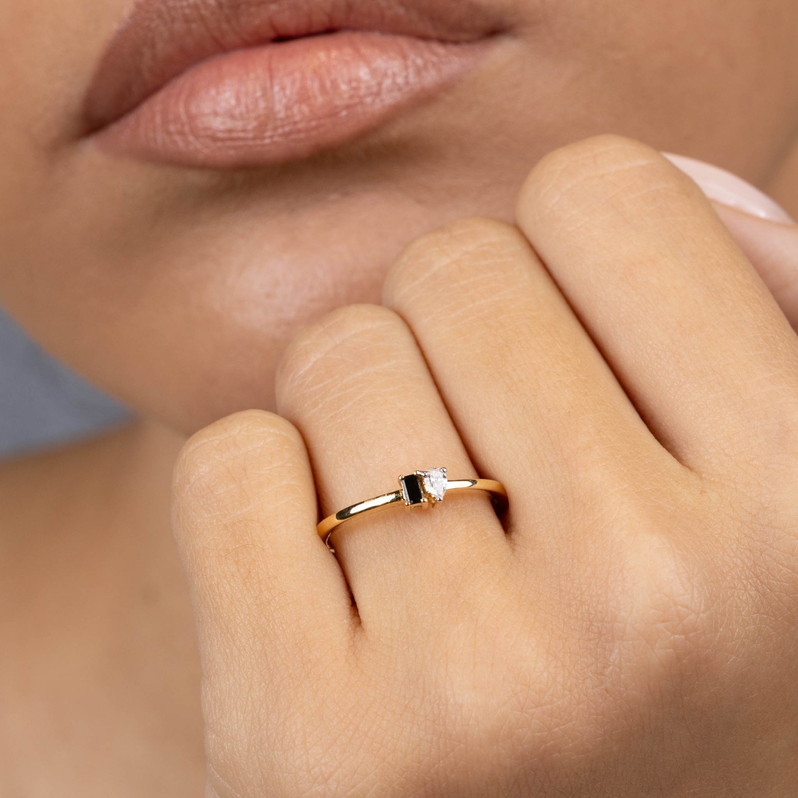 Inel Aur Galben 14K, Diamant Alb 0.07 Ct, Diamant Negru 0.06 Ct