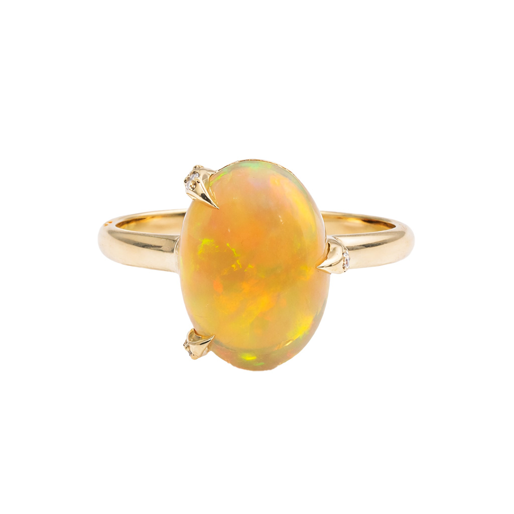 Inel Aur Galben 14K, Opal 4.25 Ct, Diamante 0.07 Ct