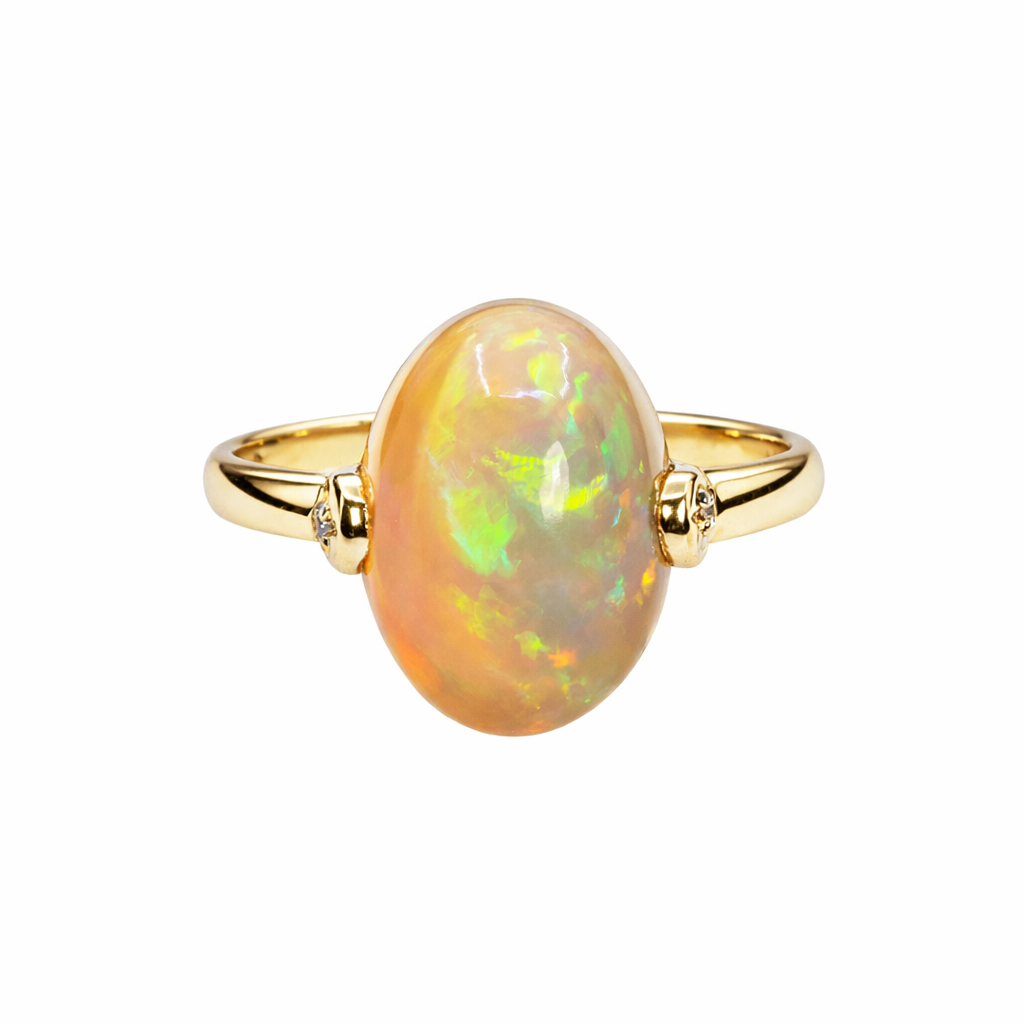 Inel Aur Galben 14K, Opal 5.00 Ct, Diamante 0.03 Ct