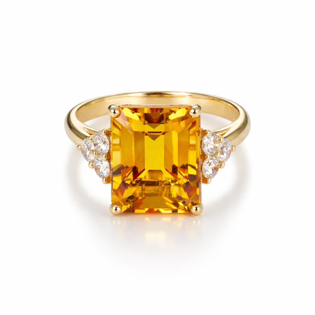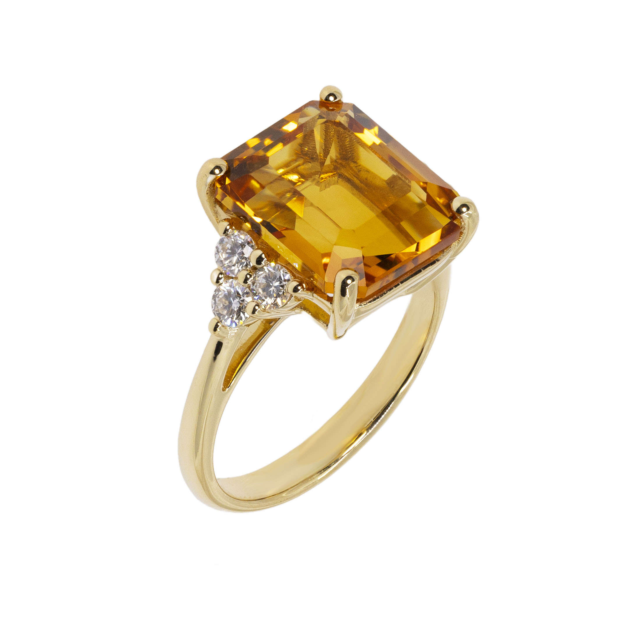 Inel Aur Galben 18k, Citrin 6.10 Ct, Diamante 0.46 Ct