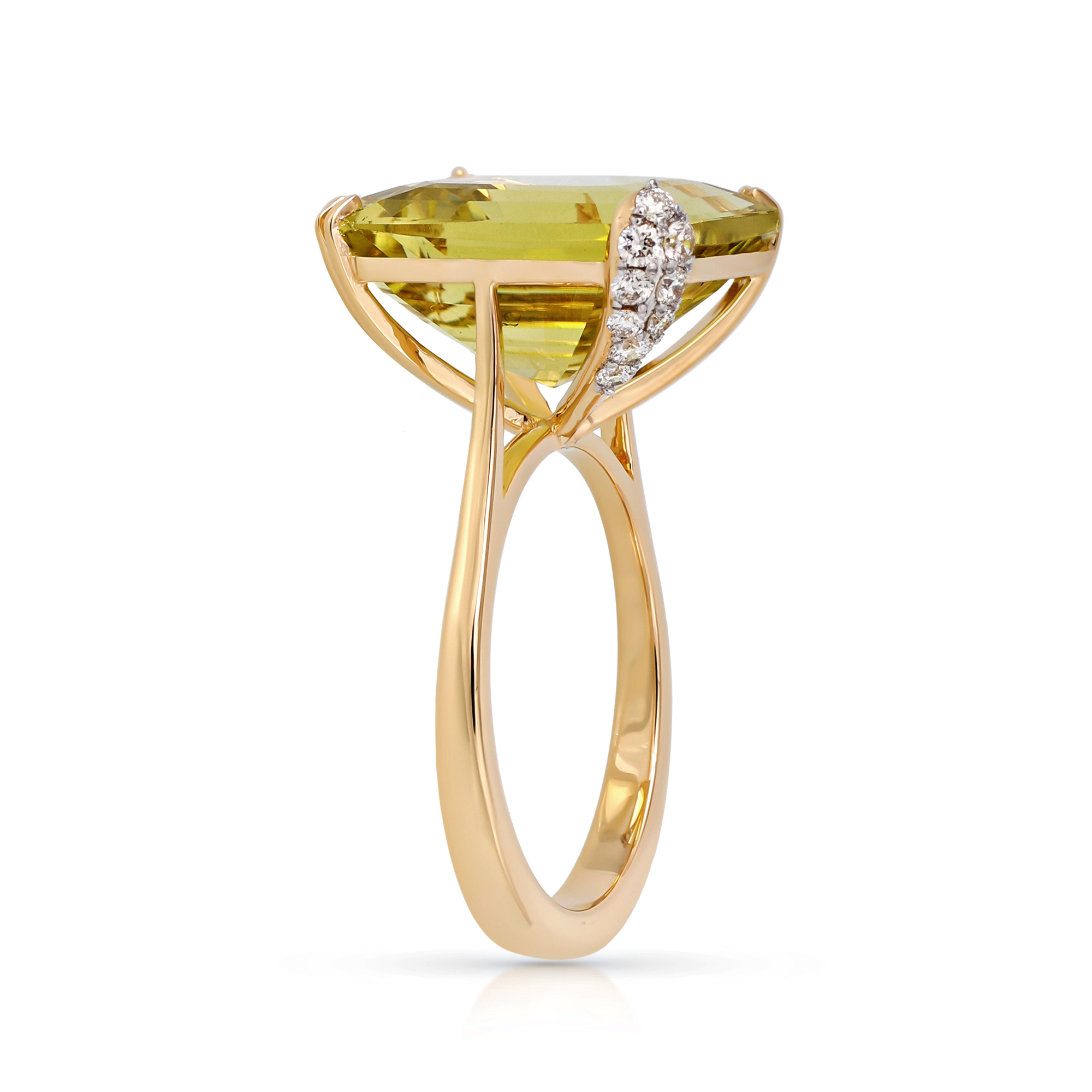 Inel Aur Roz 14K, Lemon Cuart 9.62 Ct, Diamante 0.30 Ct