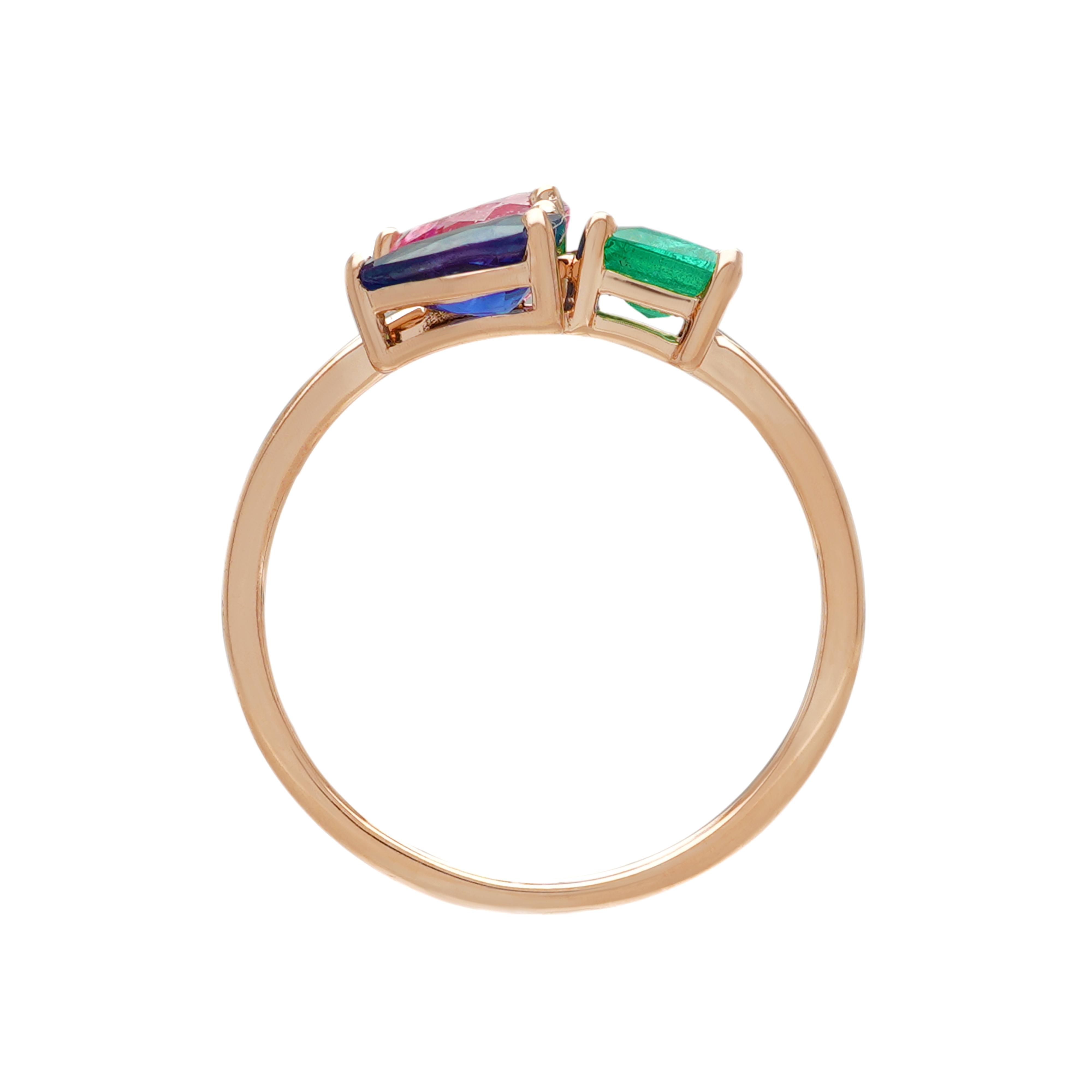 Inel Aur Roz 14k, Safir Roz 0.80 ct, Safir Albastru 0.66 ct, Smarald 0.66 ct,