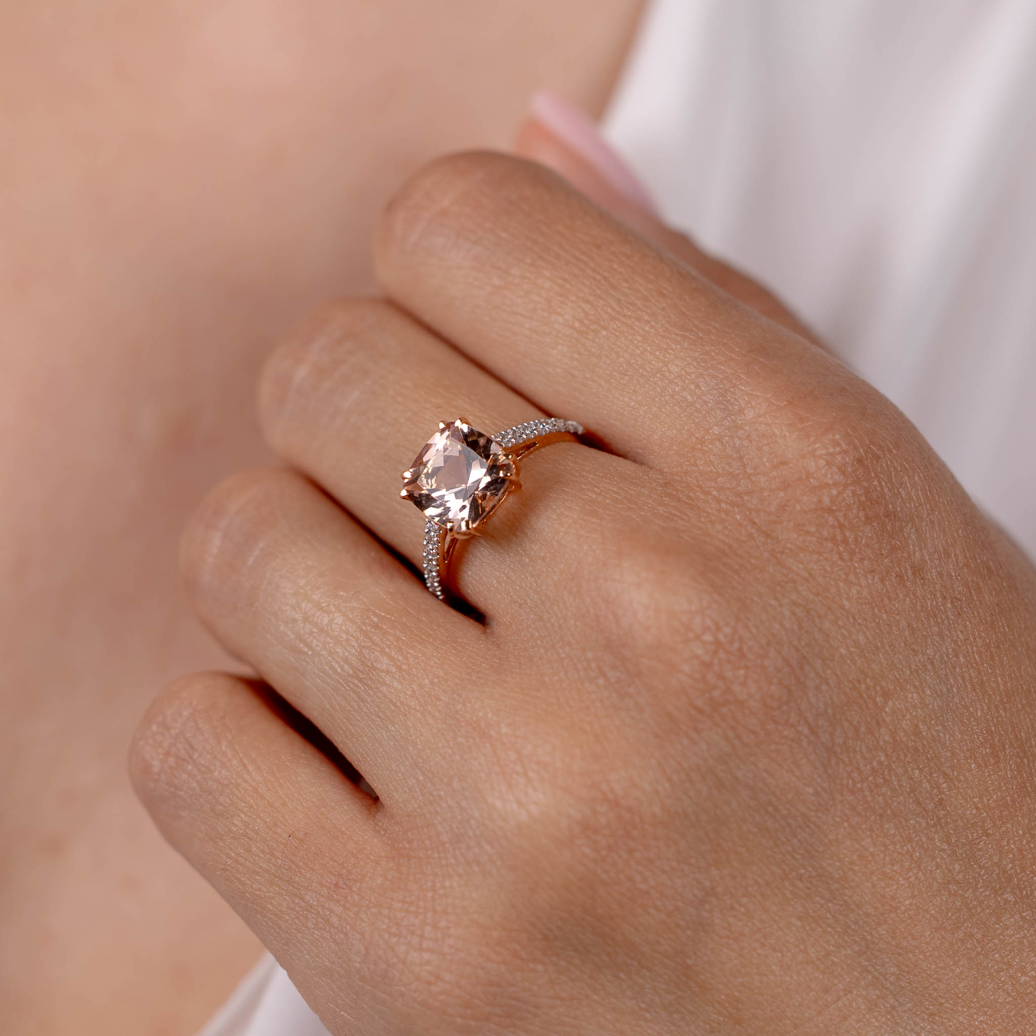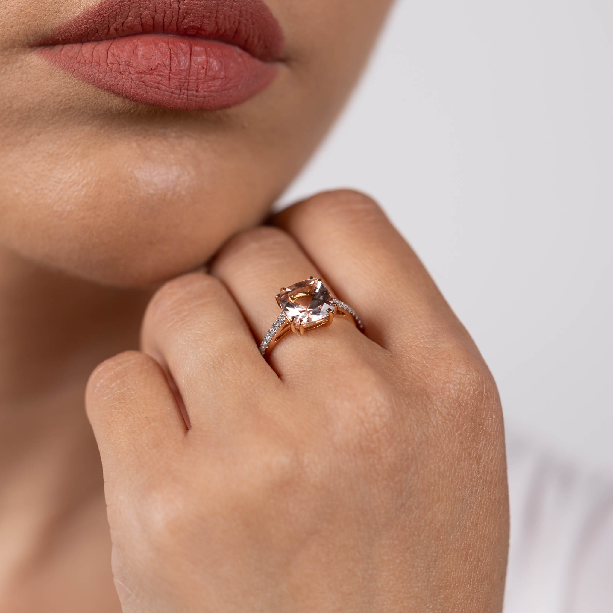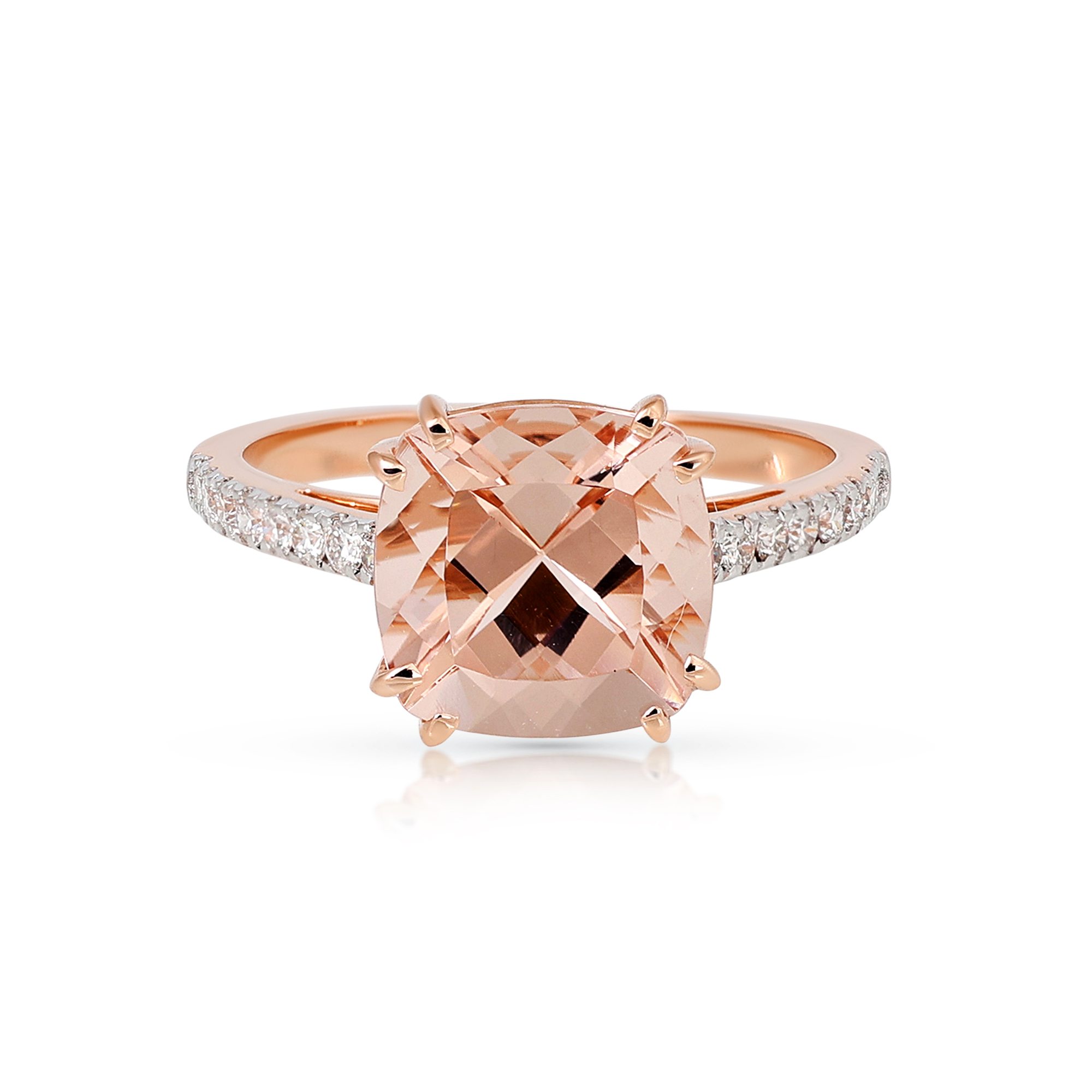Inel Aur Roz 18k, Morganit 2.90 ct, Diamante 0.23 ct
