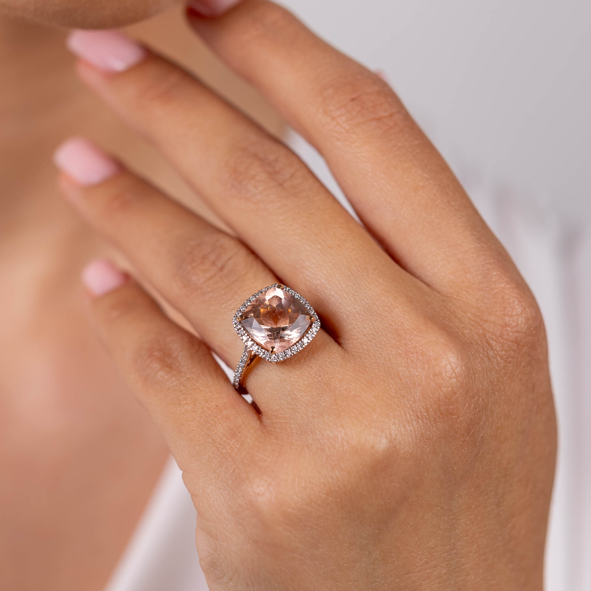 Inel Aur Roz 18k, Morganit 5.00 ct, Diamante 0.42 ct