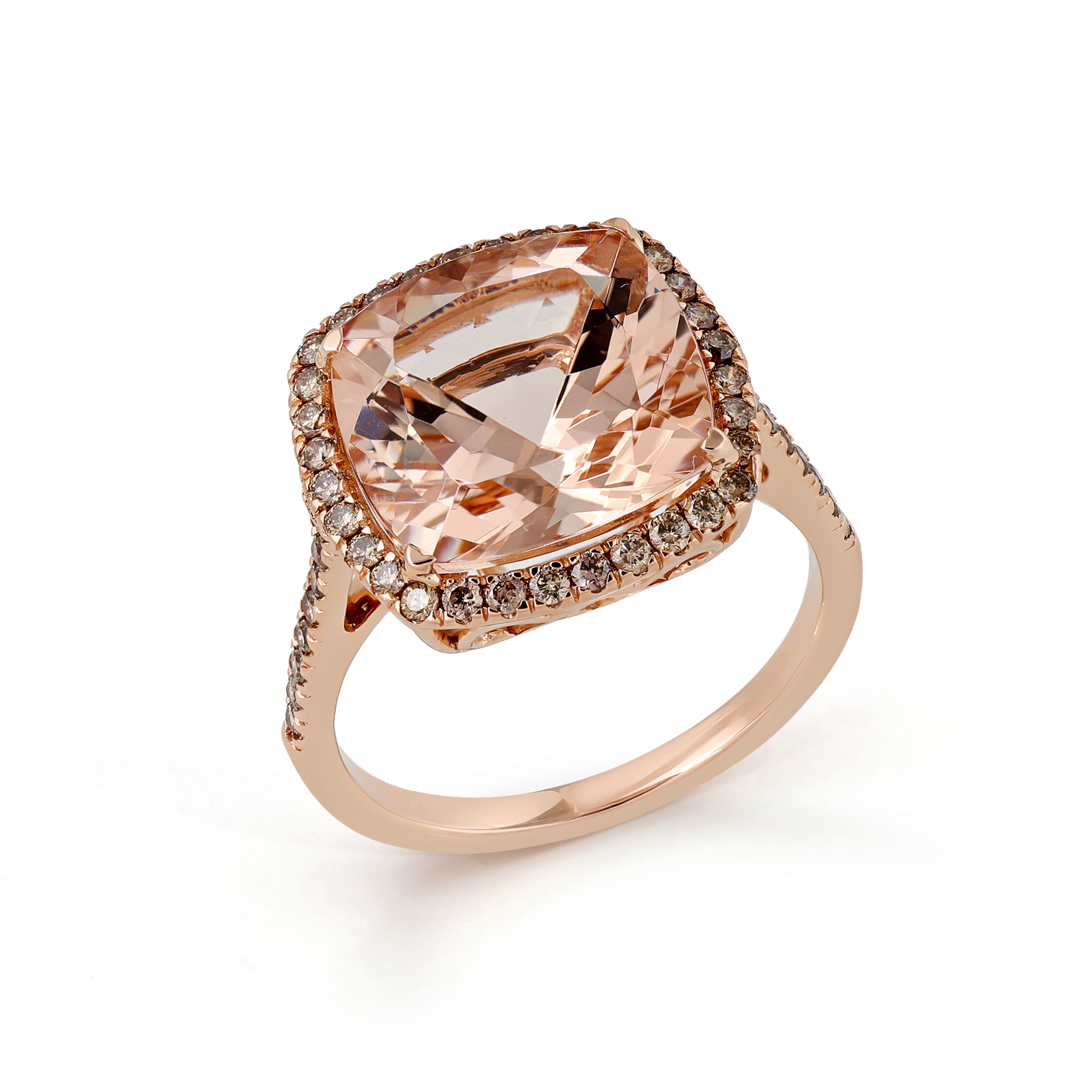 Inel Aur Roz 18k, Morganit 5.00 Ct, Diamante Champagne 0.42 Ct
