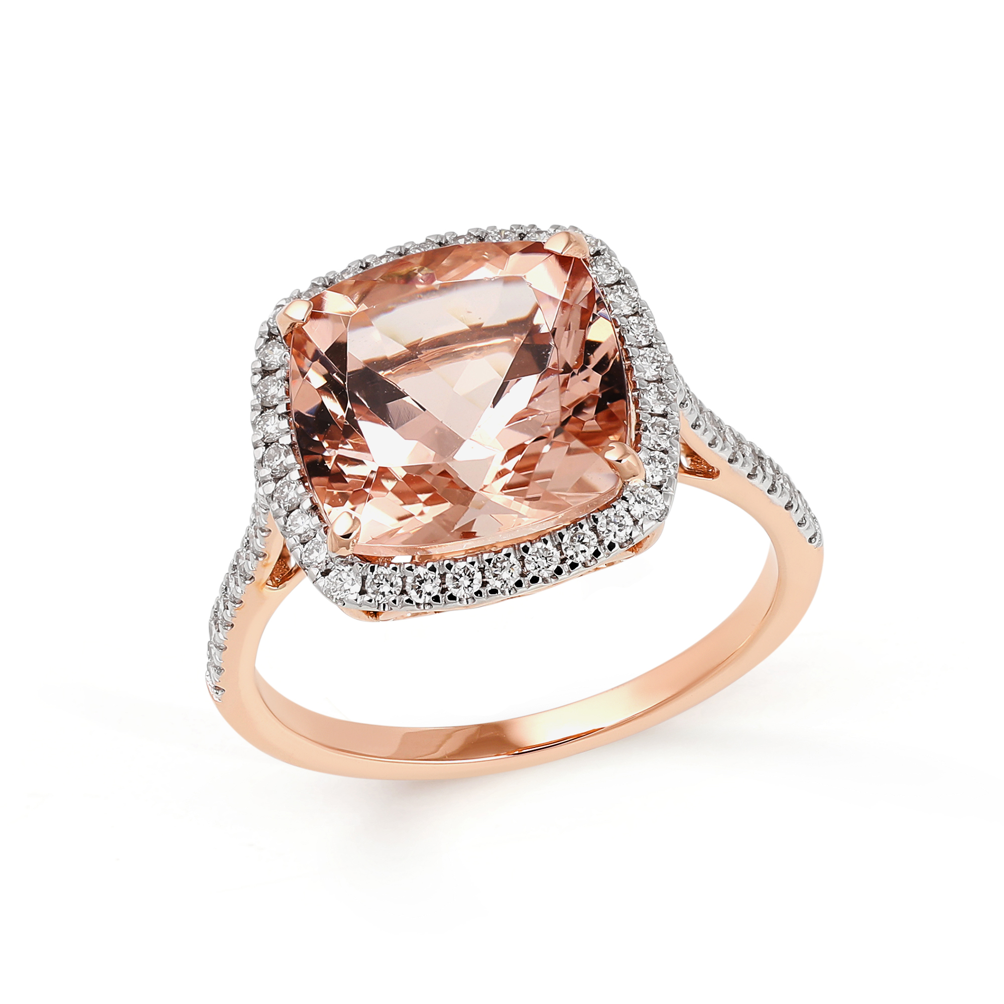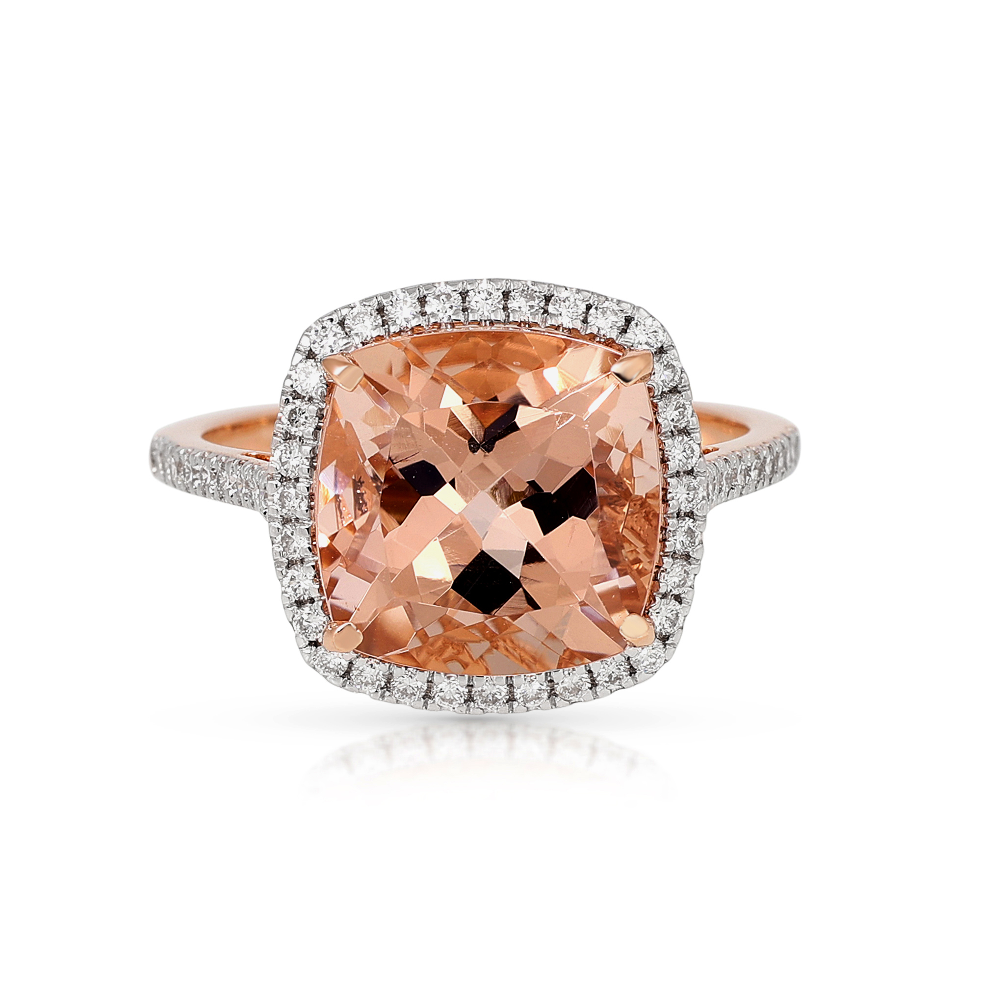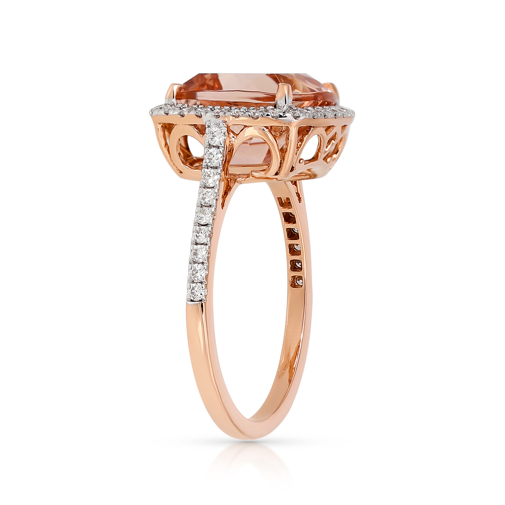 Inel Aur Roz 18k, Morganit 5.60 ct, Diamante 0.42 ct