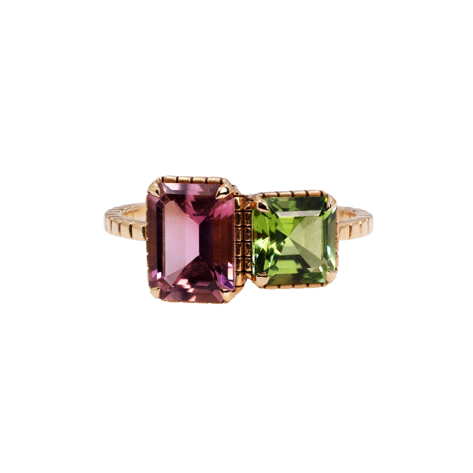 Inel Aur Roz 18K, Turmalina Roz 1.41 Ct, Turmalina Verde 1.01 Ct